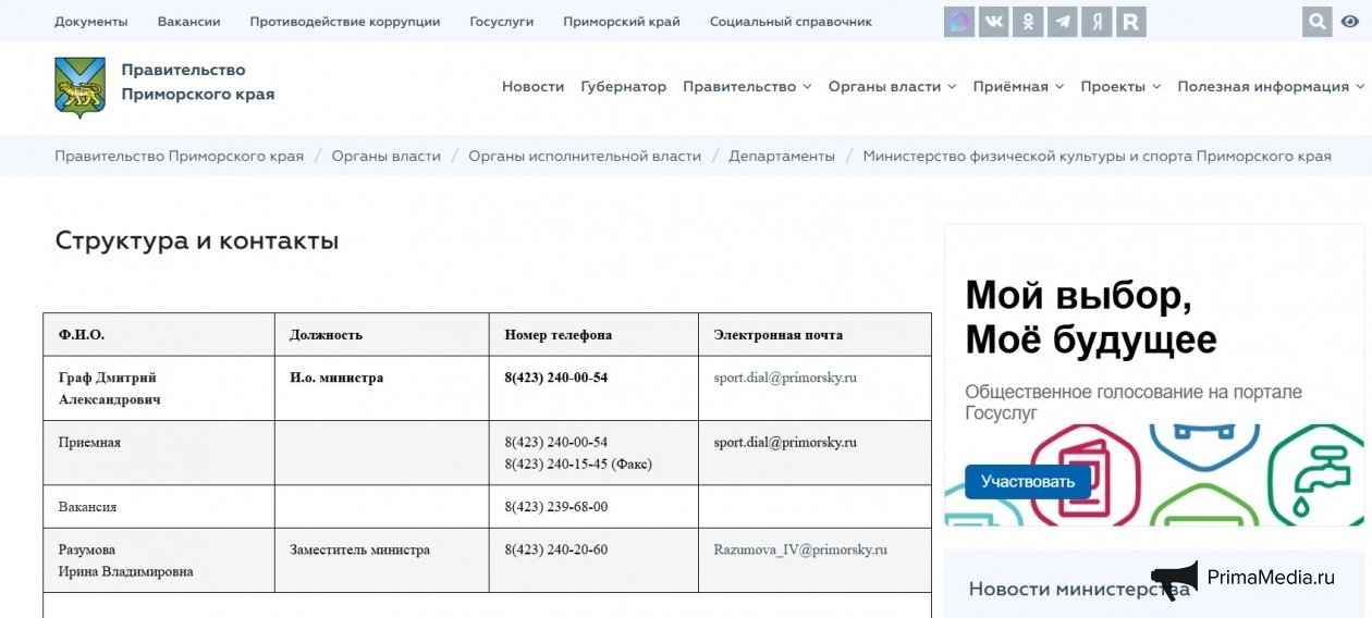 Тем не менее, на этой неделе на официальной странице Минспорта на сайте правительства Приморья обновилась информация о структуре. Ориентировочно 12 февраля ФИО Жана Кузнецова исчезло в данных о руководителе — теперь там фигурирует Дмитрий Граф, как и.о. Также обновился раздел с контактами, где произошли аналогичные изменения.