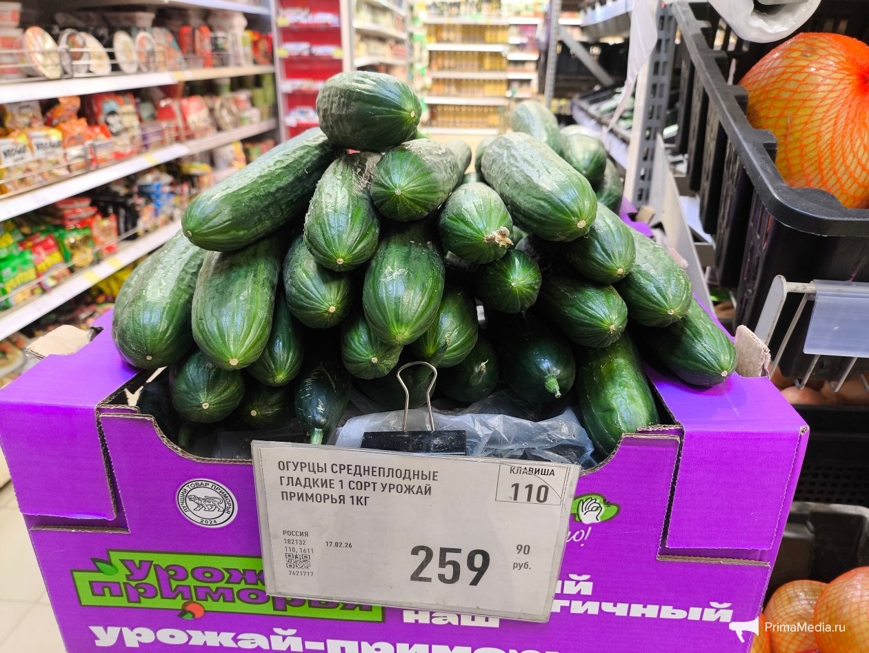 PrimaMedia, 18 февраля. Начало 2026 года преподнес жителям ряда российских регионов неприятный сюрприз в виде дефицита огурцов и стремительного роста цен на них. В Новосибирске, Волгограде и Санкт-Петербурге местные СМИ и телеграм-каналы (18+) сообщают о пустующих полках и введенных ограничениях — покупателям предлагают не более пяти килограммов в одни руки. Стоимость овоща в центральной части России стартует от 400 рублей за килограмм. ФАС проверяет ценообразование у производителей. Корреспондент ИА PrimaMedia решил выяснить, отразилась ли эта тенденция на жителях Владивостока и по какой цене сейчас можно купить огурцы в городе.