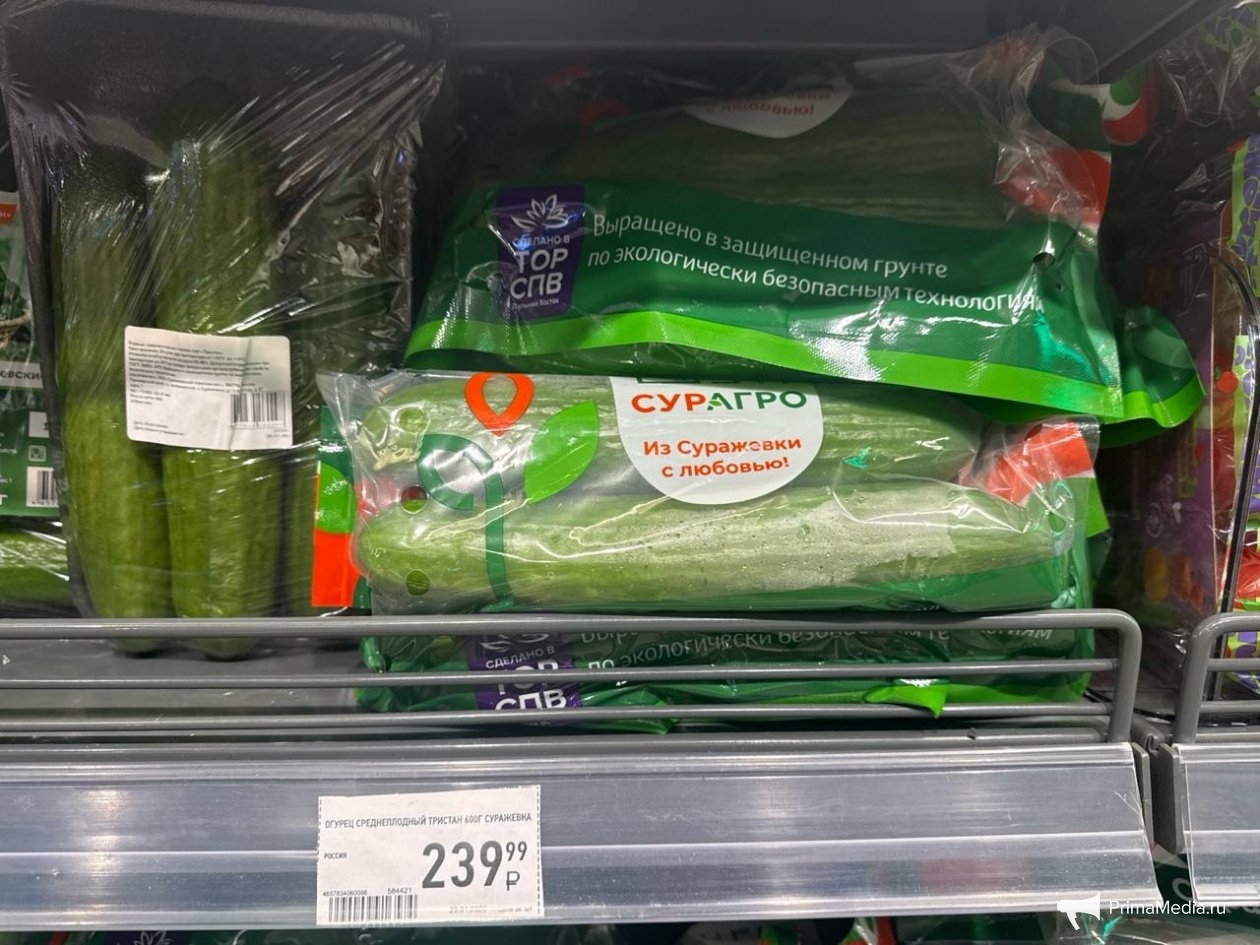 В крупных сетевых магазинах ассортимент шире. В супермаркете "Самбери" представлено сразу несколько видов: упаковка среднеплодных огурцов из Суражевки весом 600 грамм обойдется в 239,99 рубля, популярные здесь огурцы Яни стоят 259,99 рубля за кило, а килограмм маленьких китайских огурцов — 249,99 рубля.