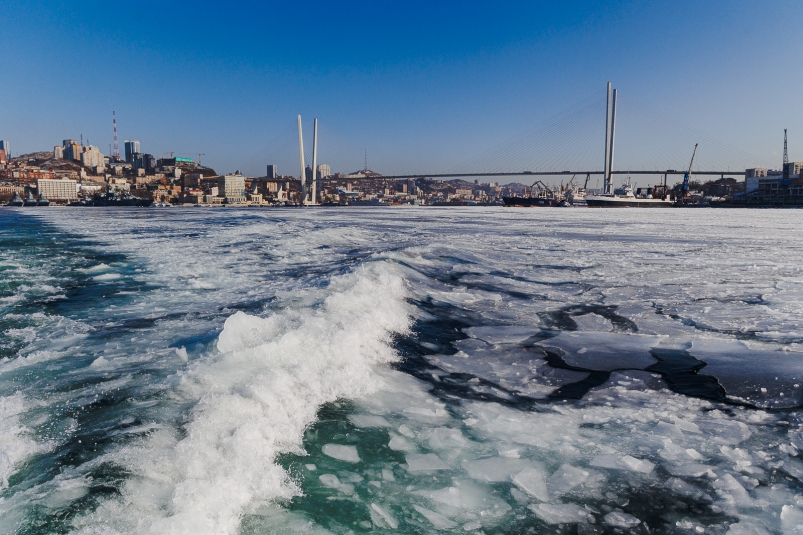 "Частично разрушена кромка тонкого припайного льда в южной части Амурский залив, при этом в Уссурийский залив площадь припайного белого льда сохранилась в прежних границах. С переходом к сильному северному ветру лёд начал дрейфовать в открытую часть залива Петра Великого. Количество плавучего льда в Амурском и Уссурийском заливах значительно уменьшилось", — говорится в сообщении.