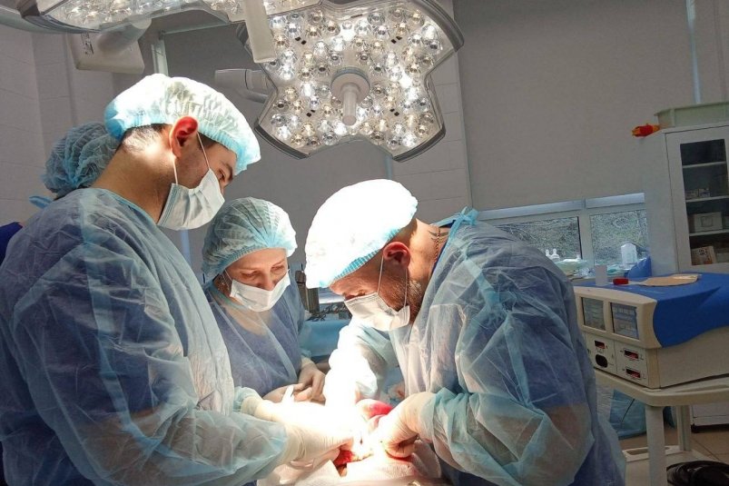 Операцию провели хирурги Андрей Мерена и Вугар Мамедов. Из-за размеров и сложного расположения опухоли пришлось удалить и поражённый надпочечник. Вмешательство выполнили комбинированным способом: сначала лапароскопически отделили новообразование через мини-проколы, затем извлекли его через небольшой разрез. Такой подход позволил снизить травматичность, ускорить восстановление и минимизировать риски.