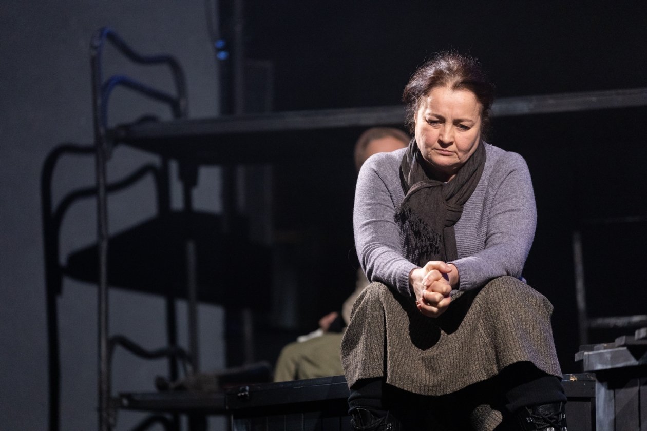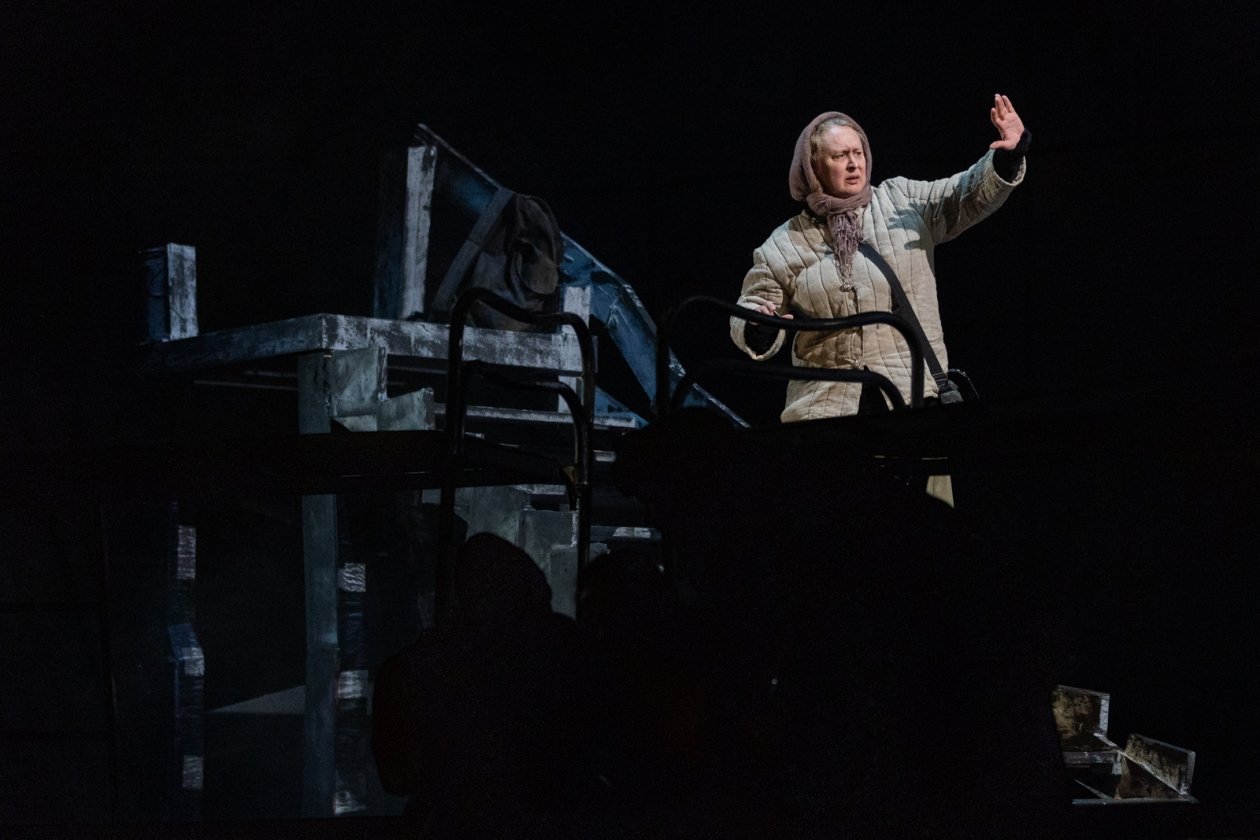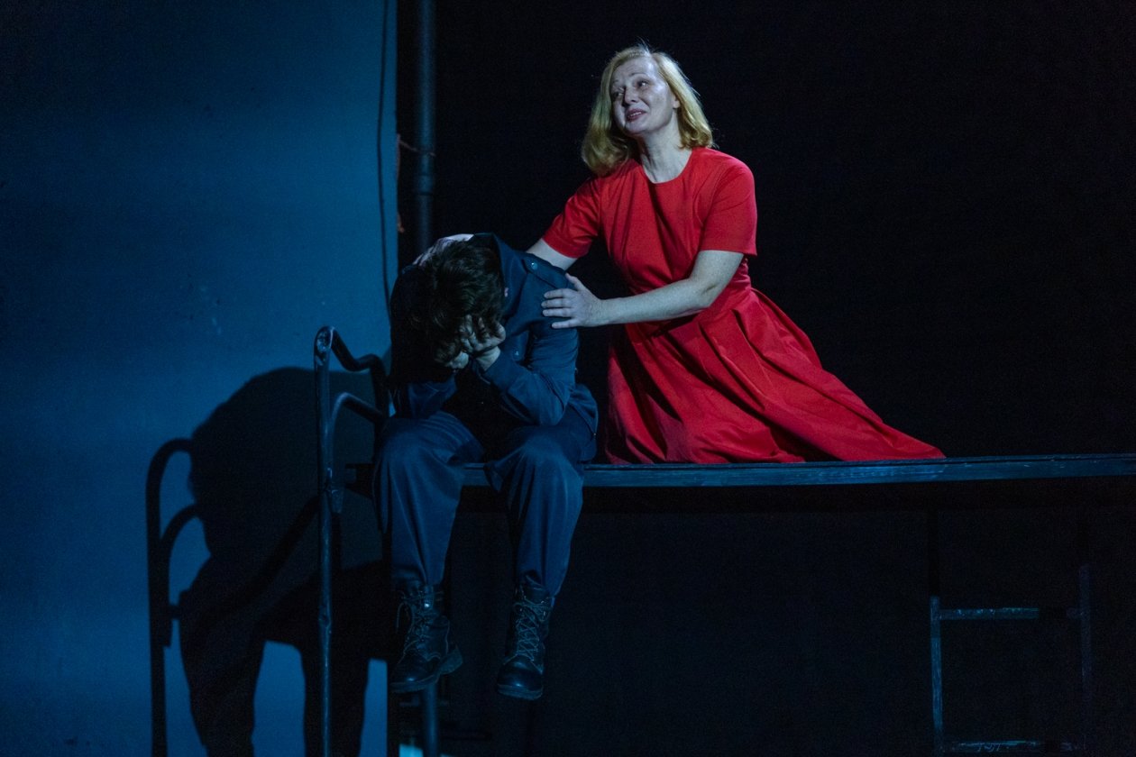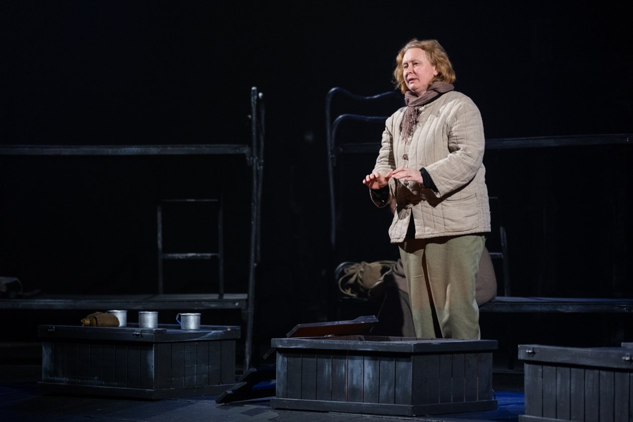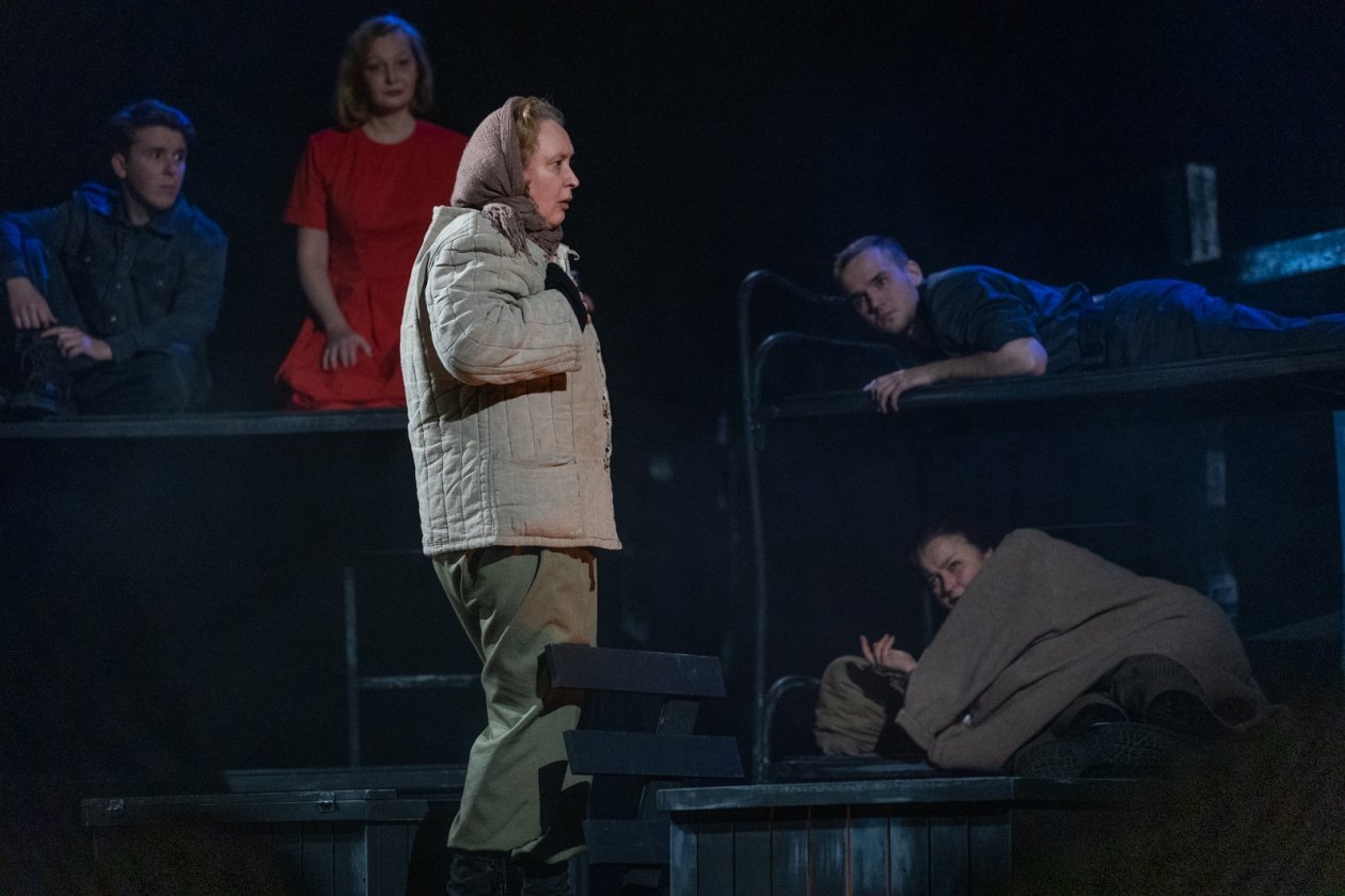 Свет на сцене в полной мере появляется в финале, в сцене разговора "живых и мертвых", который слушаешь уже с улыбкой после притчи о белом и черном. И потом, когда Старшенькая (Мария) пишет письмо сыну (пока пишет, он еще жив):