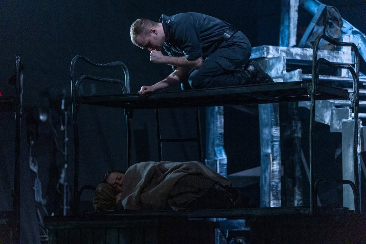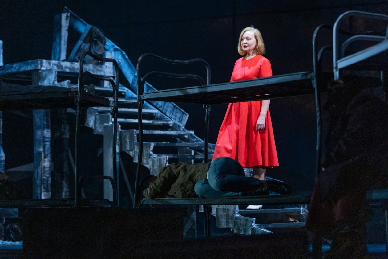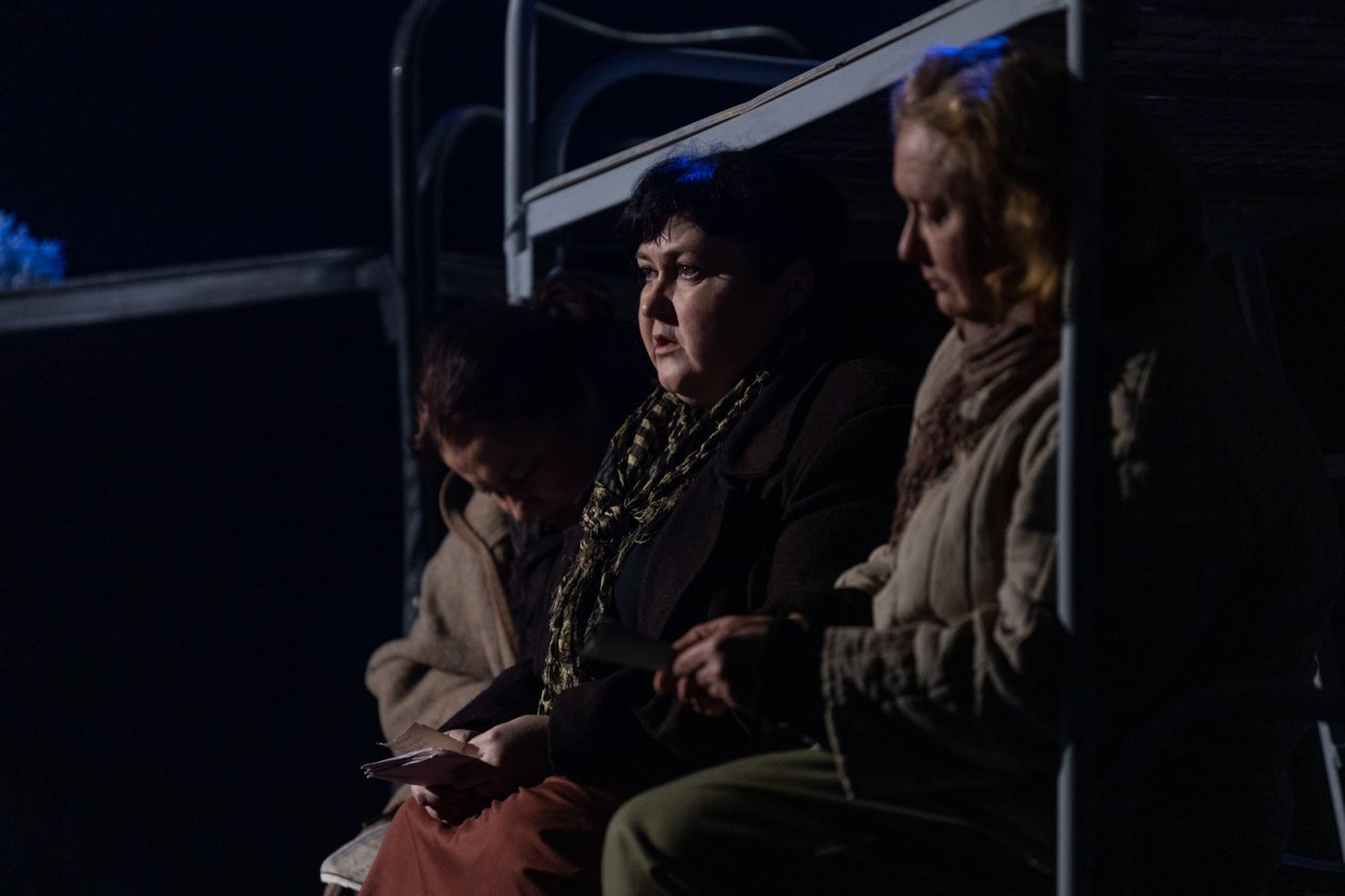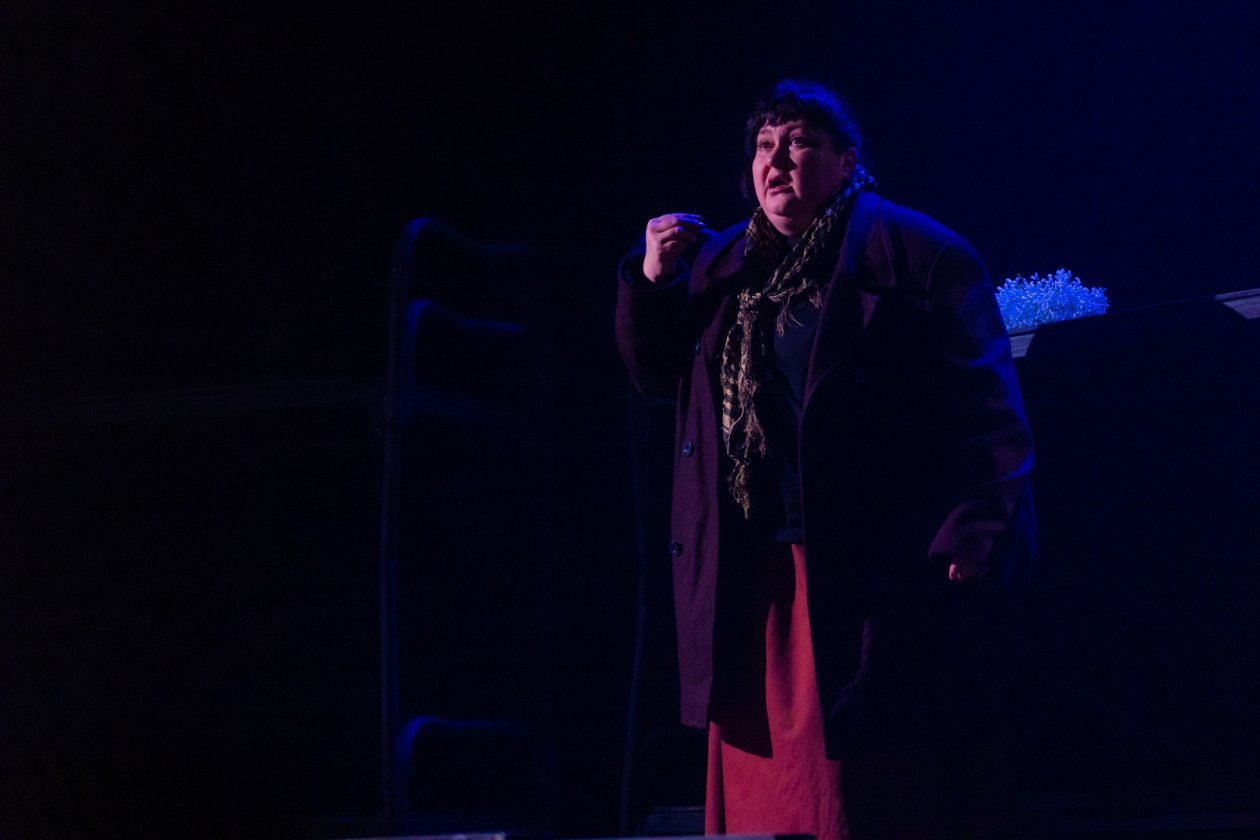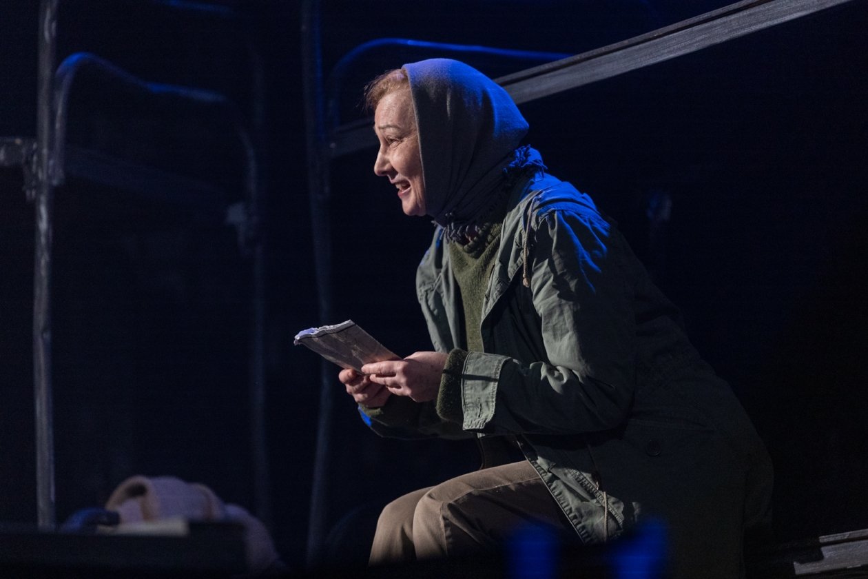 Свет на сцене в полной мере появляется в финале, в сцене разговора "живых и мертвых", который слушаешь уже с улыбкой после притчи о белом и черном. И потом, когда Старшенькая (Мария) пишет письмо сыну (пока пишет, он еще жив):
