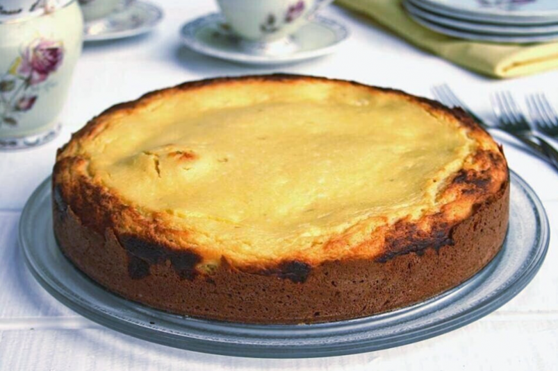 4. Выпекайте при 180 градусах примерно 40 минут. Готовность проверяйте зубочисткой. Дайте ватрушке немного остыть в форме.