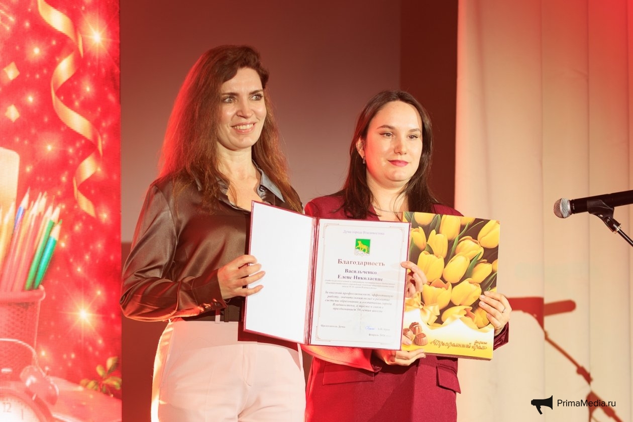 В знак признания она вручила благодарственное письмо Федерации профсоюзов Приморья директору школы Елене Кравчук и грамоту заместителю директора по учебно-воспитательной работе Оксане Горявиной.