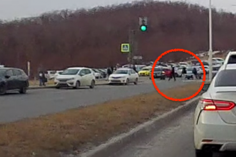 Конфликт произошел на острове Русский во Владивостоке. На видео, опубликованном в tg-канале "NBS24" (18+) — люди идут на регулируемом пешеходном переходе.