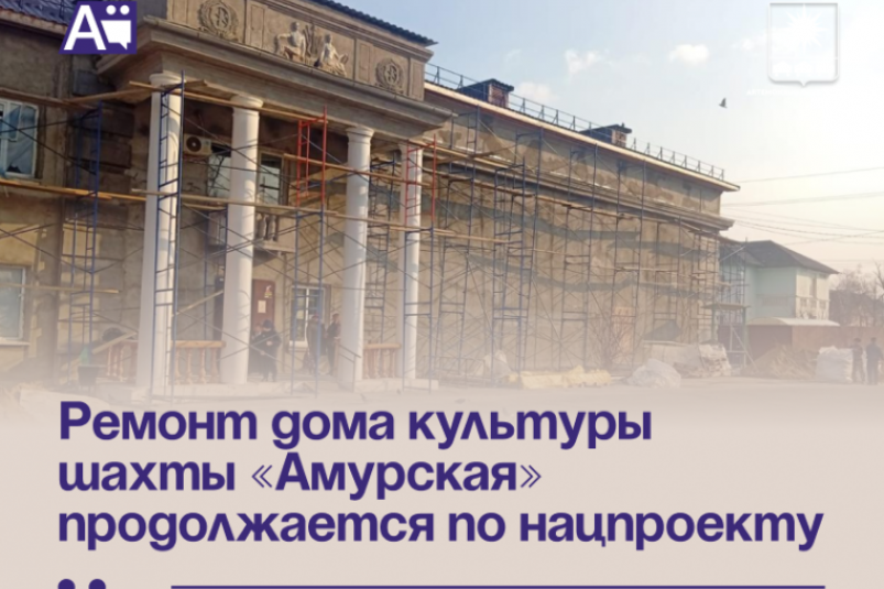 PrimaMedia, 2 марта. Капитальный ремонт Дома культуры шахты "Амурская" в городе Артёме завершат к концу августа. Уже выполнены базовые строительные работы. Сегодня готовность работ — около 40%. Объект отремонтируют в рамках национального проекта "Семья", инициированного президентом России Владимиром Путиным, сообщили в пресс-службе правительства Приморского края.