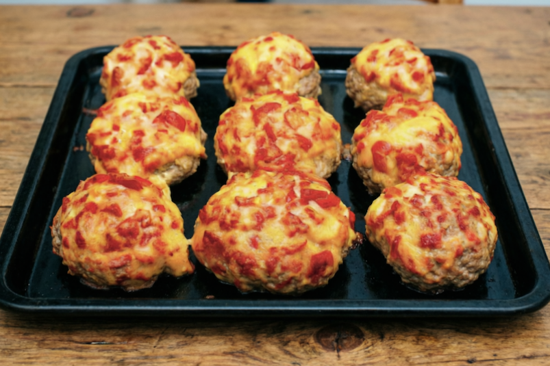 - Разогрейте духовку до 180 градусов и запекайте котлеты около 30–35 минут, пока мясо полностью не приготовится, а сыр сверху не расплавится и слегка не подрумянится.