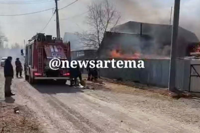 В Артеме пожарные МЧС России потушили частный дом, полностью охваченный огнем Площадь возгорания составила 60 квадратных метров