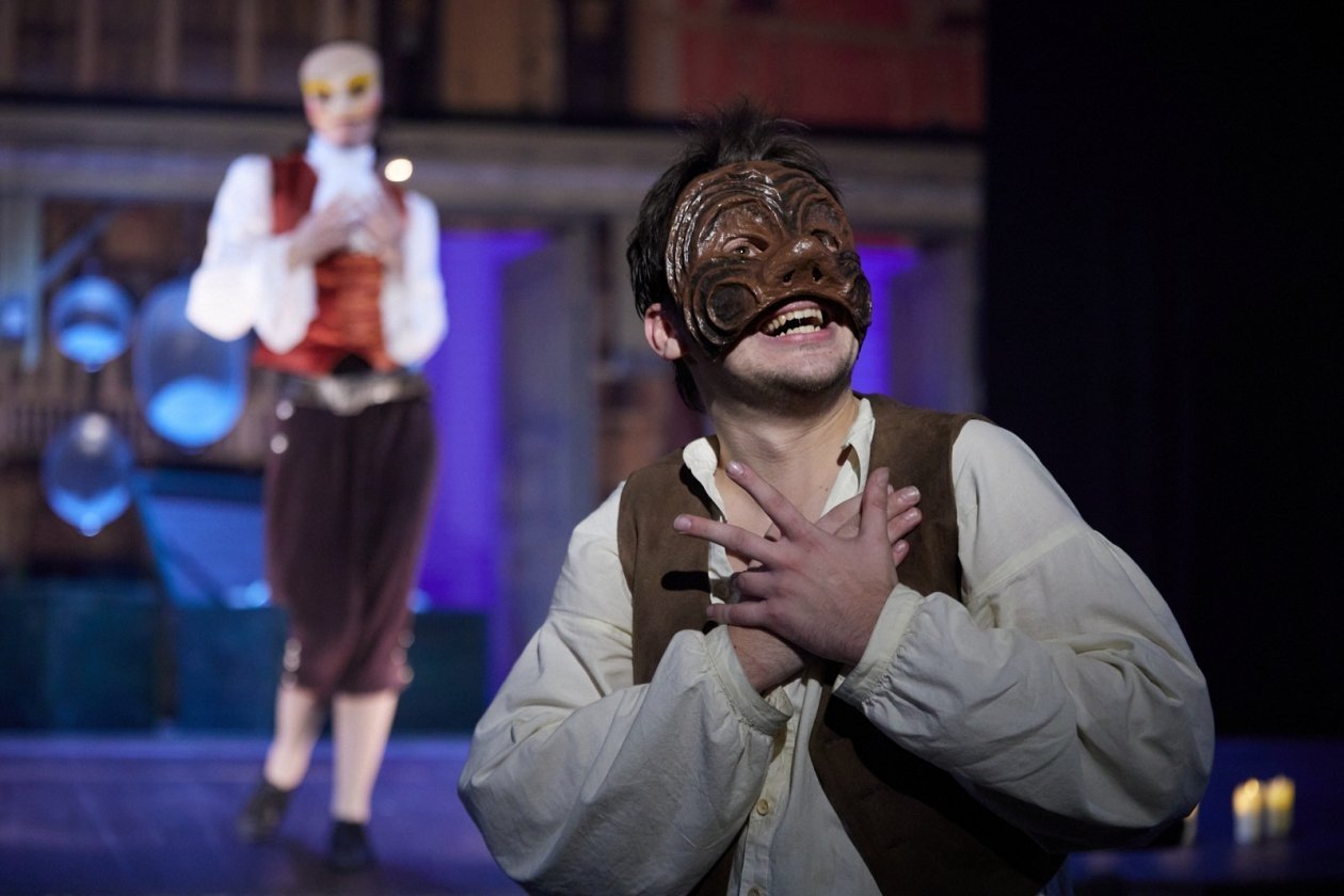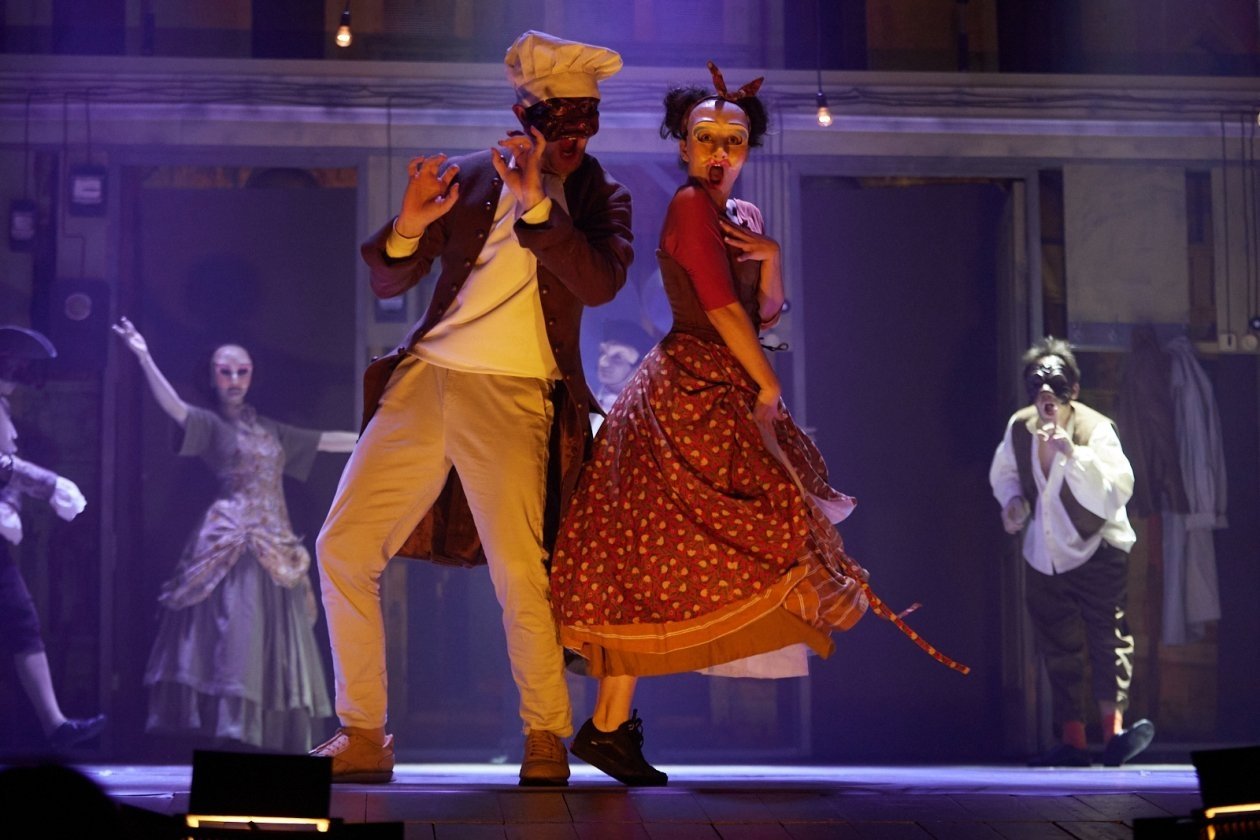 Спектакль понравился и запомнился. Яркое, музыкальное, эксцентрическое представление в жанре "фантазии на тему комедии дель арте" по пьесе выдающегося итальянского драматурга XVIII века Карло Гольдони "Слуга двух господ" (16+) передало дух времени, в котором жили и творили два великих Карло — Гольдони и Гоцци, два непримиримых антагониста в театральном искусстве. Гоцци настаивал, что именно комедия дель арте с актерами в масках является главным направлением итальянской сцены, Гольдони же стремился заменить комедию масок на комедию интриг с изображением реальной жизни и нравов. Один раз Гольдони и Гоцци даже заключили пари. Гоцци утверждал, что напишет фьябе (пьесу-сказку) на самый незатейливый сюжет, добившись при этом колоссального успеха. Так появилась комедия "Любовь к трем апельсинам" (6+), завоевавшая весь мир.