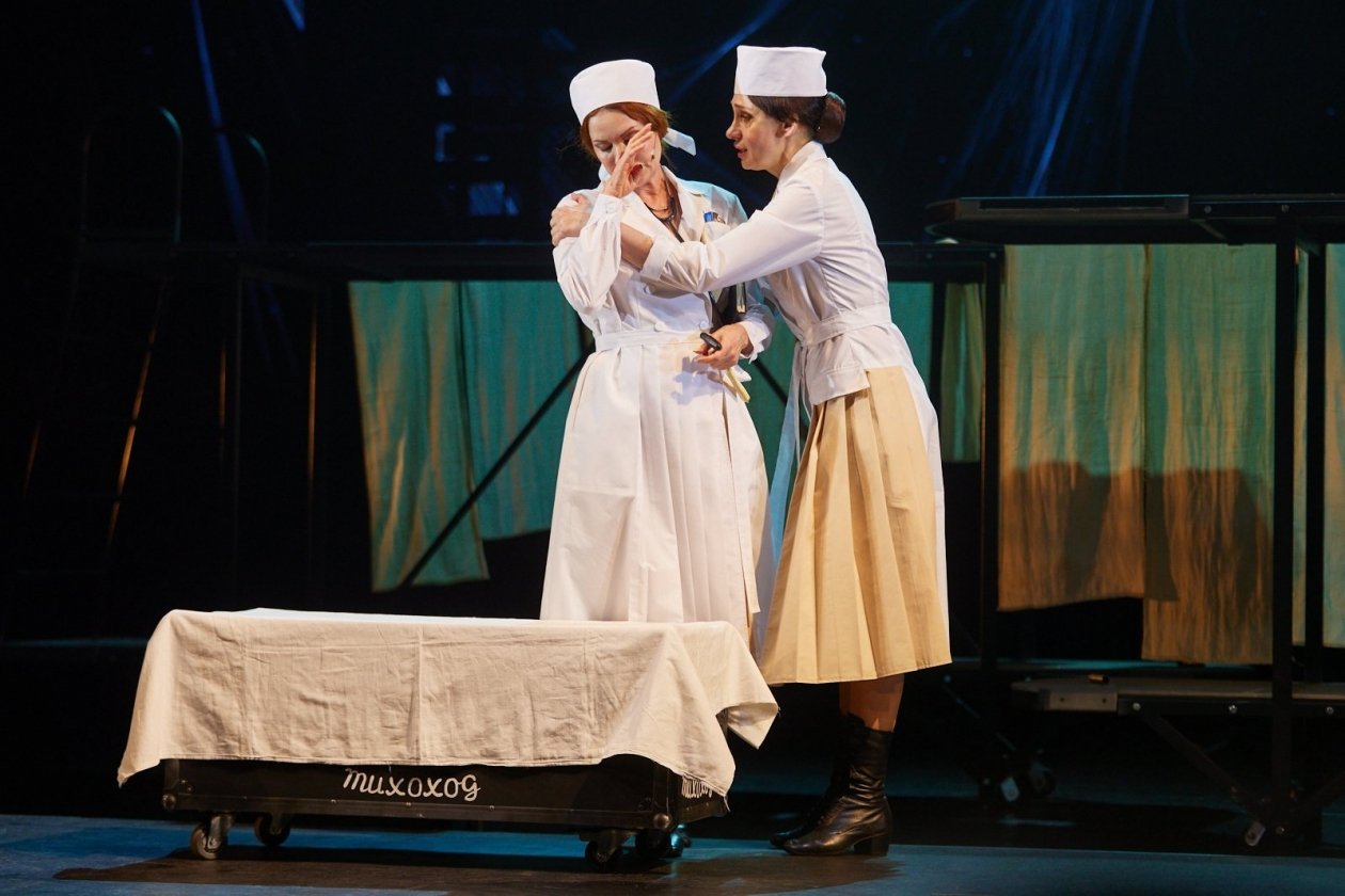 Работалось над ролью прекрасно. И я считаю, что это один из лучших спектаклей нашего театра, один из лучших спектаклей, поставленных Ефимом Семеновичем. У нас получился особый спектакль — День Победы и в жизни, и на сцене. Главные события, которые были в жизни страны, память о людях, которые в этих событиях участвовали. Великолепные партнеры! Этот спектакль — театр во всех его проявлениях и жанрах: драматические сцены (а порой и трагические, и комические), танцы, песни, много пластического движения, света, музыки. И моя роль — женщина, которая мечтала стать актрисой, но в силу жизненных обстоятельств стала медицинским работником.
