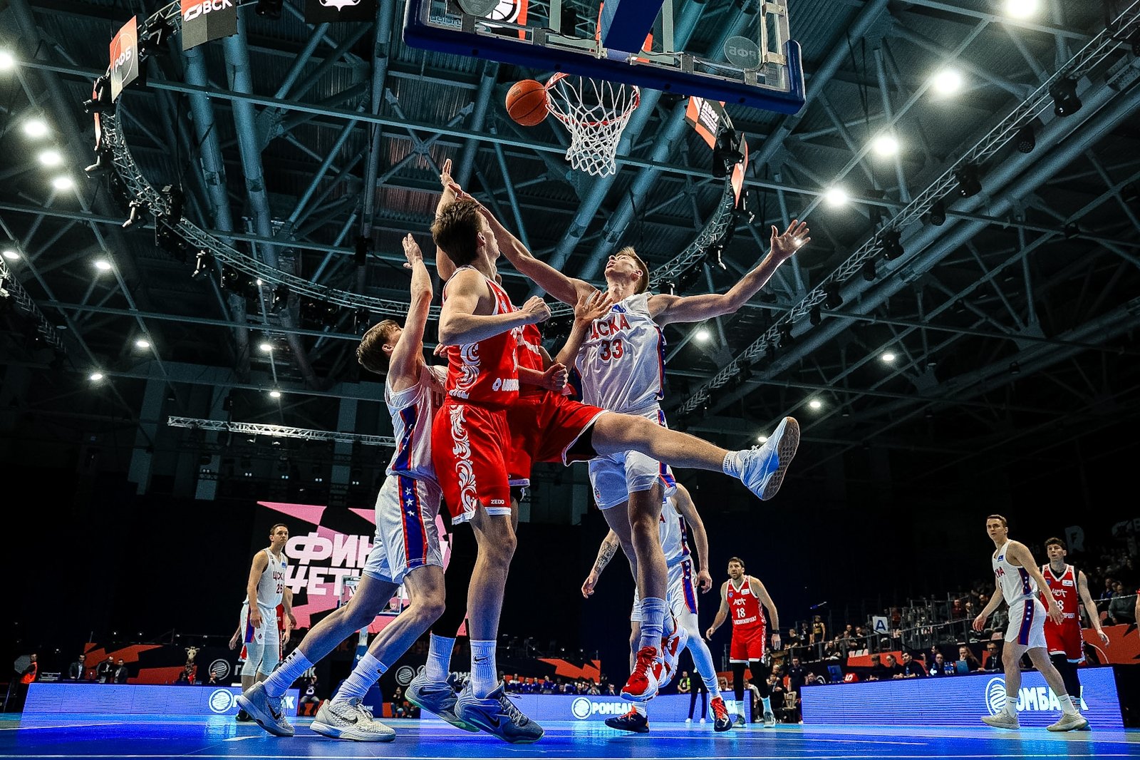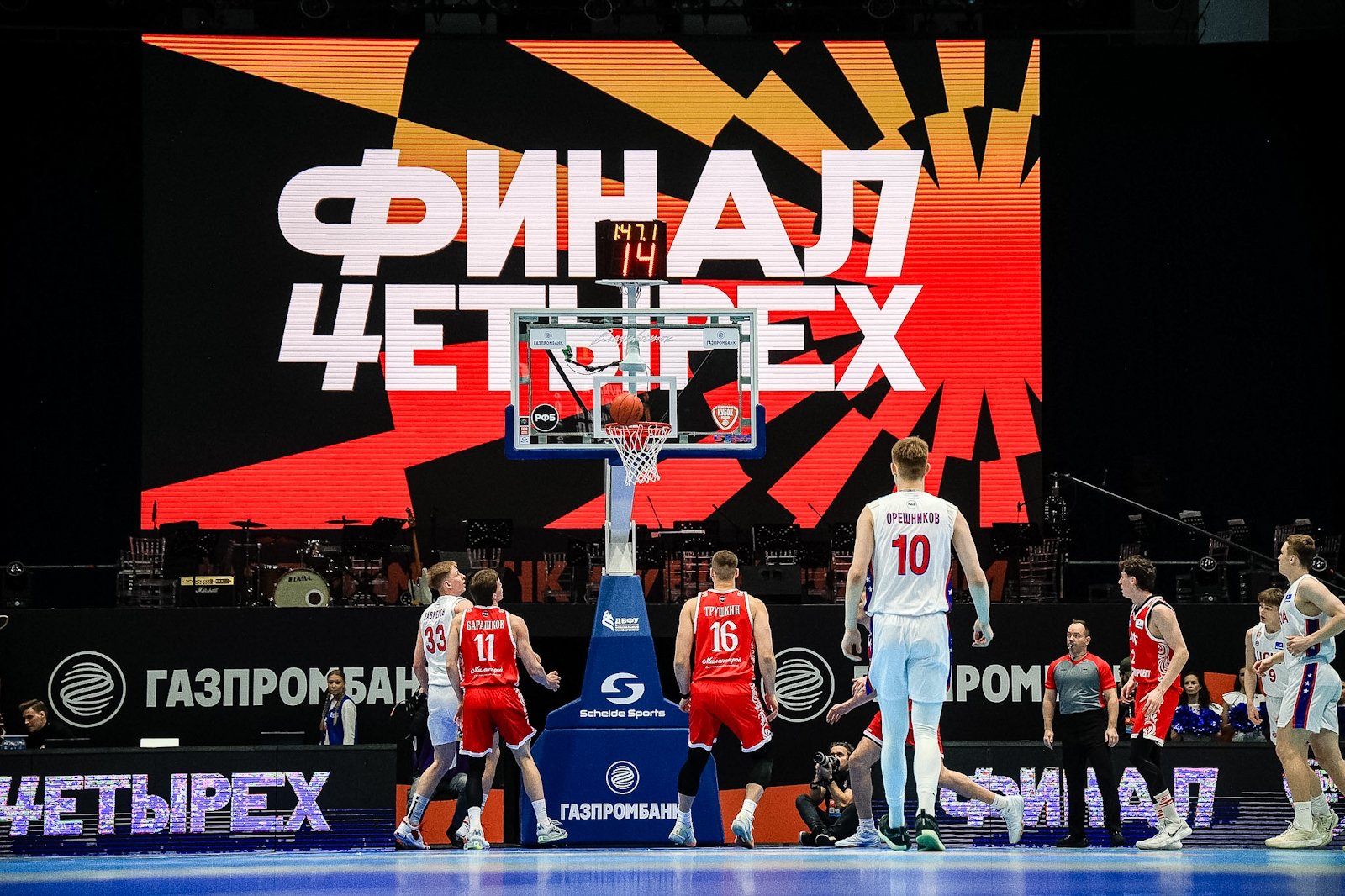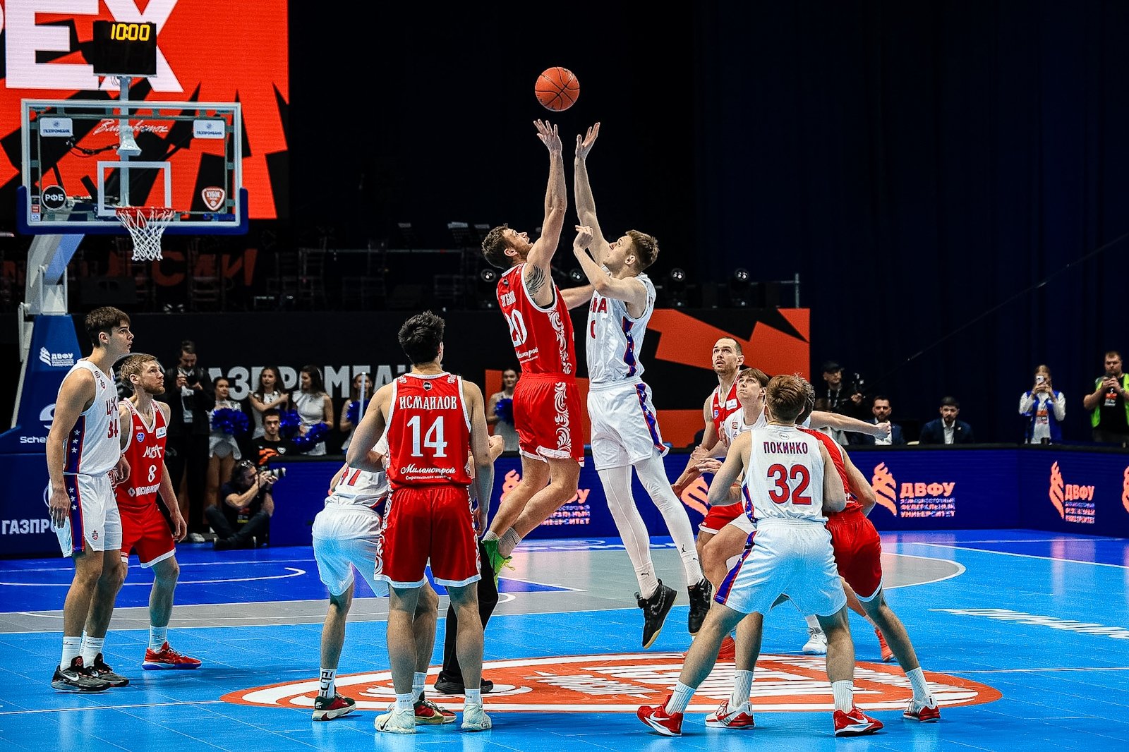 Вечером 13 марта в кампусе ДВФУ стартовал "Финал четырех" Кубка России по баскетболу. В борьбу за трофей вступили хозяева площадки — "Динамо" (Приморский край), а также "ПАРИ Нижний Новгород", МБА-МАИ (Москва) и ЦСКА-2. В составе москвичей на площадку вышел 39-летний бронзовый призер Олимпийских игр Евгений Воронов. Фотокорреспондент ИА PrimaMedia запечатлел самые яркие моменты первого игрового вечера.
