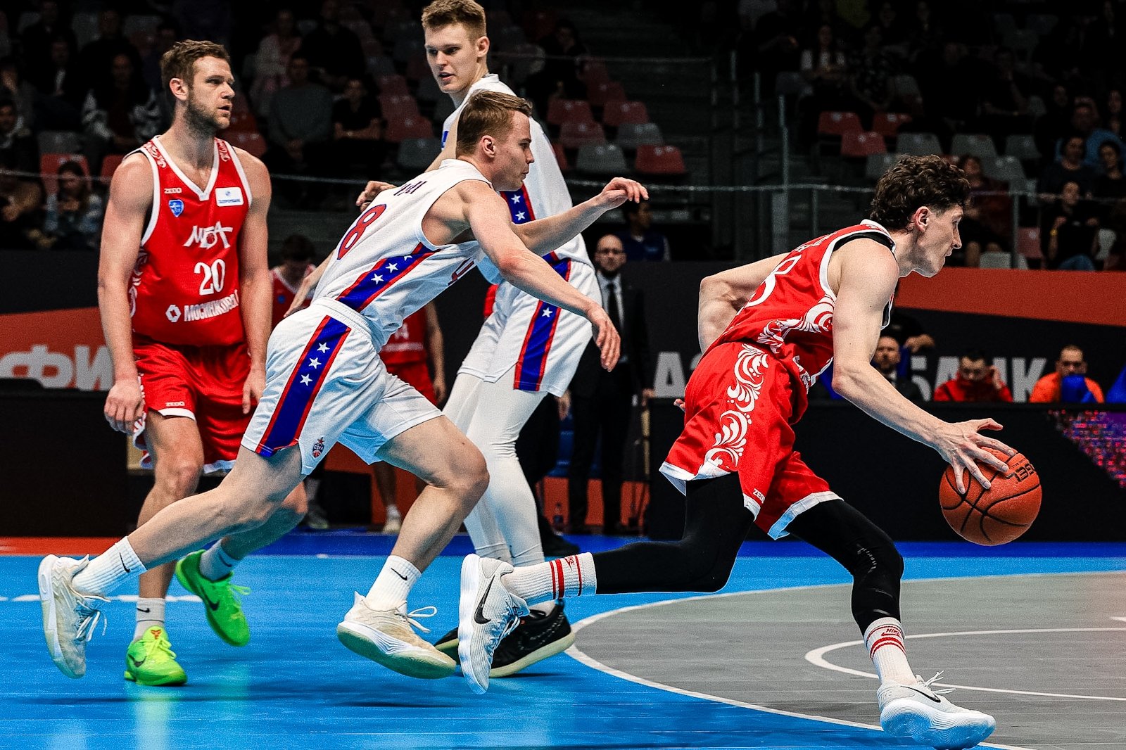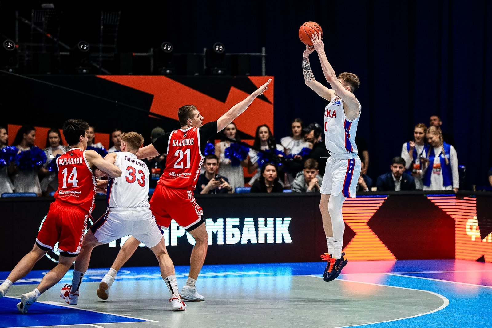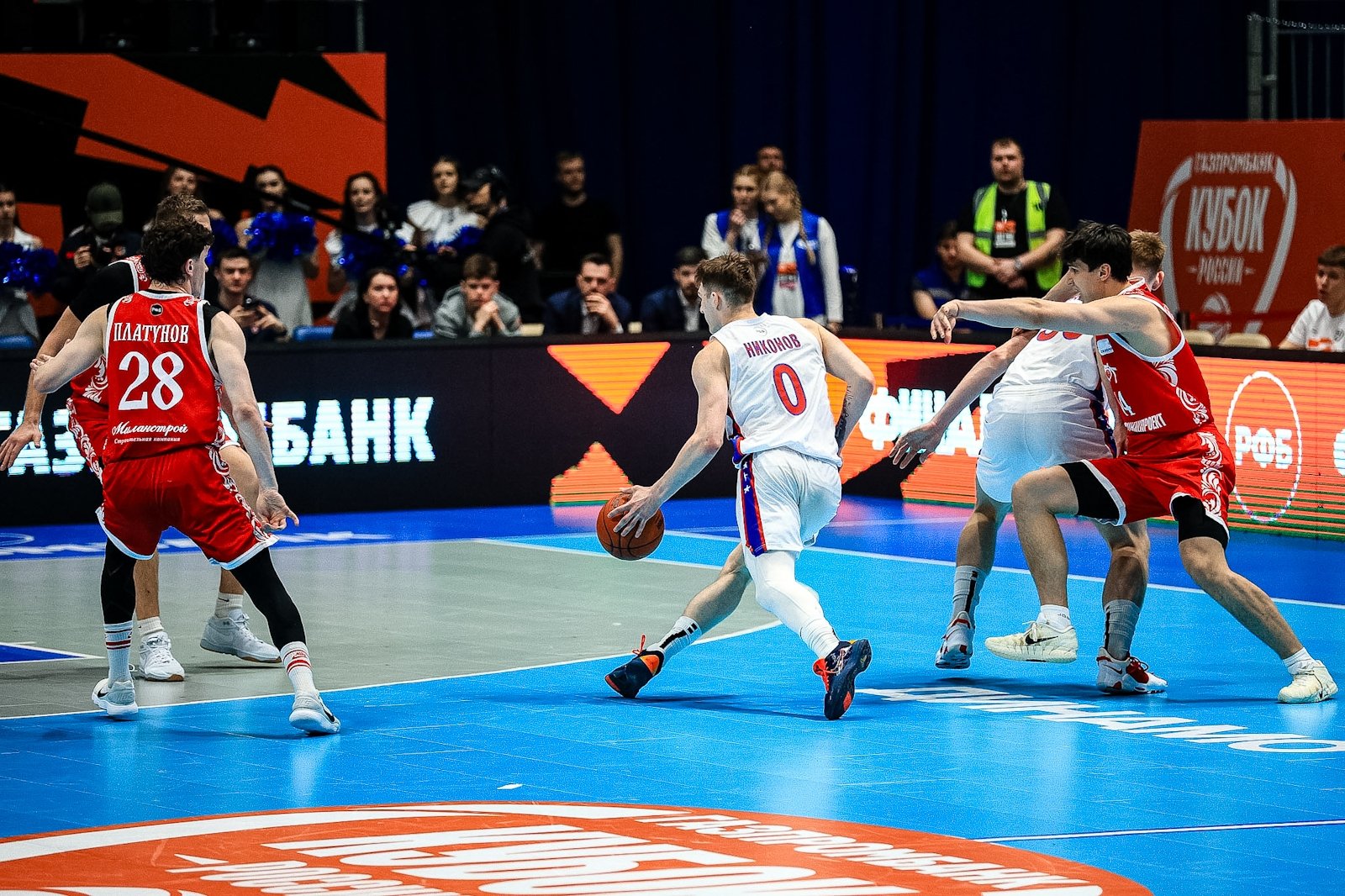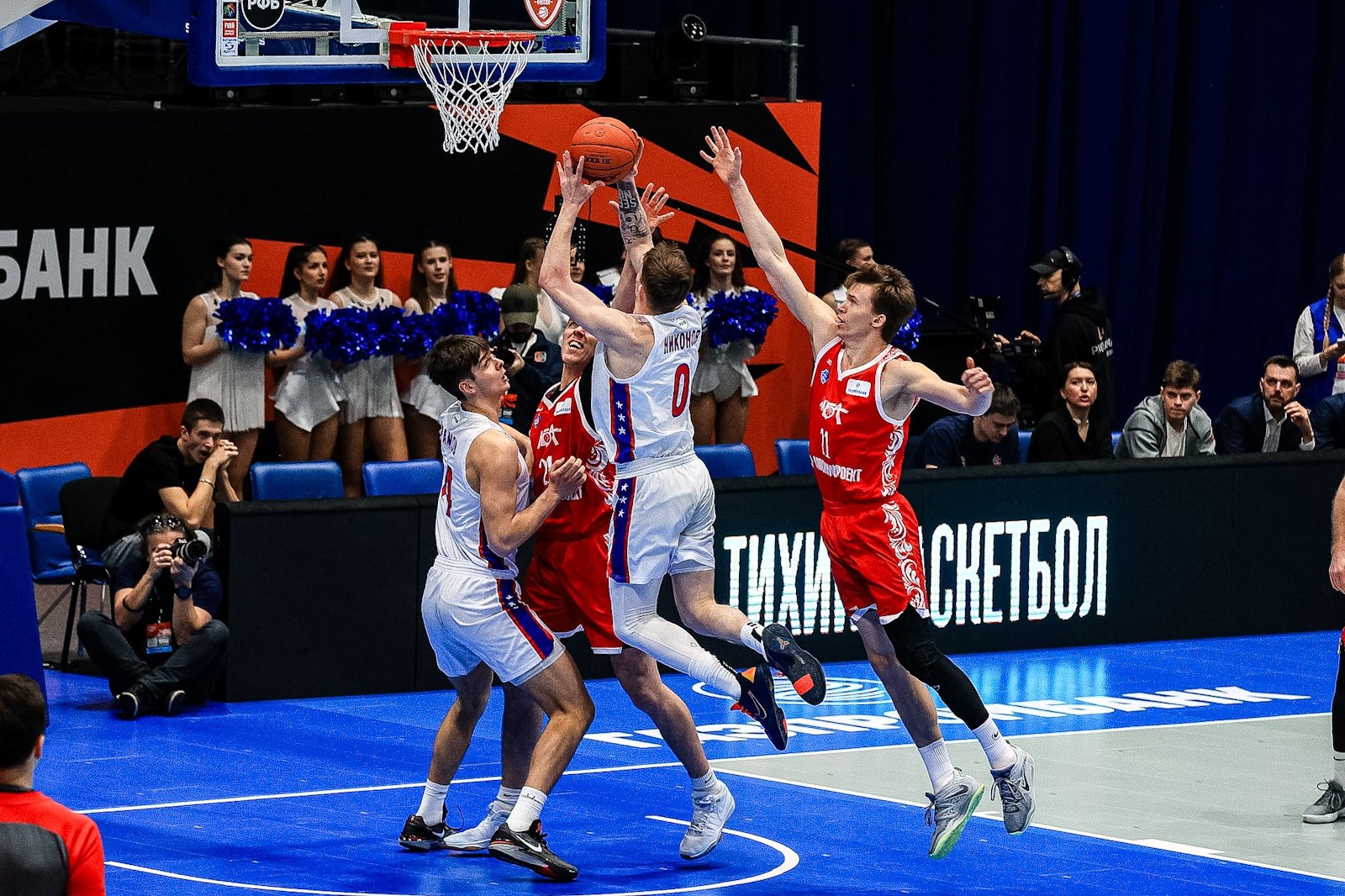 Вечером 13 марта в кампусе ДВФУ стартовал "Финал четырех" Кубка России по баскетболу. В борьбу за трофей вступили хозяева площадки — "Динамо" (Приморский край), а также "ПАРИ Нижний Новгород", МБА-МАИ (Москва) и ЦСКА-2. В составе москвичей на площадку вышел 39-летний бронзовый призер Олимпийских игр Евгений Воронов. Фотокорреспондент ИА PrimaMedia запечатлел самые яркие моменты первого игрового вечера.