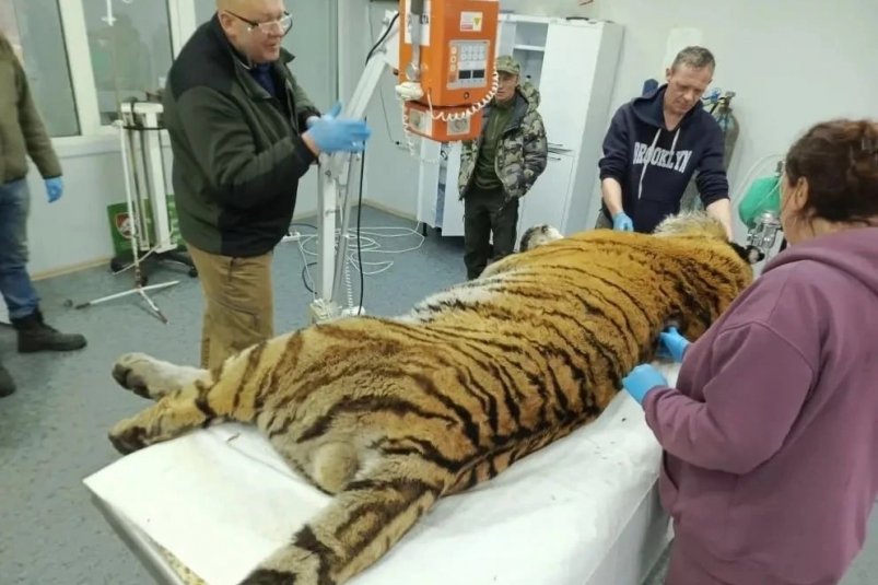 "Ветеринары установили, что это крупный самец весом 199 килограммов в возрасте около 5-6 лет. У животного обнаружено огнестрельное ранение в области спины, пуля прошла навылет. По мнению специалистов, именно это могло стать одной из причин агрессивного поведения хищника", — говорится в сообщении.