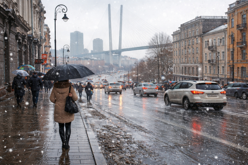 Во Владивостоке в ближайшие дни ожидается переменчивая погода с осадками в виде снега и дождя. По данным прогноза Gismeteo на ближайшие десять дней, в городе периодически будут проходить смешанные осадки, а температура будет колебаться около нулевой отметки.