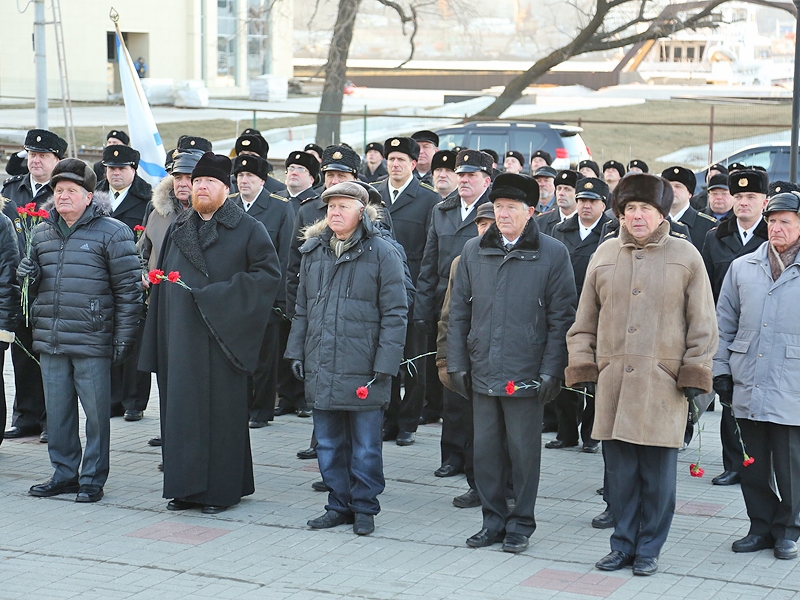 Почтить память Героя Советского Союза собрались заместитель главы администрации Владивостока Наталья Мальцева, командующий Тихоокеанским флотом контр-адмирал Сергей Авакянц, командующий войсками Восточного военного округа Константин Сиденко, председатель Дальневосточного клуба моряков-подводников ТОФ вице-адмирал запаса Александр Конев, почетный гражданин Владивостока, бывший командующий Тихоокеанским флотом адмирал Геннадий Хватов, офицеры штаба флота.