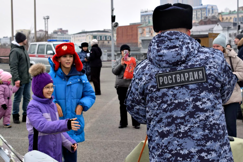 PrimaMedia, 16 марта. Тематический фестиваль в честь десятилетия образования Федеральной службы войск национальной гвардии Российской Федерации прошел в минувшую субботу на центральной площади Владивостока. В рамках мероприятия прошли мастер-классы для детей, выступление военного оркестра и выставка техники и вооружения. Сотрудники ОМОН, СОБР и военнослужащие Росгвардии продемонстрировали технику, вооружение и экипировку, а также ответили на вопросы граждан.