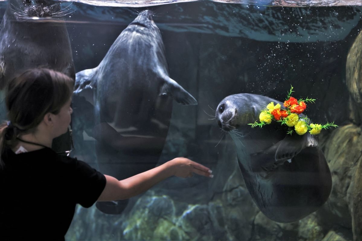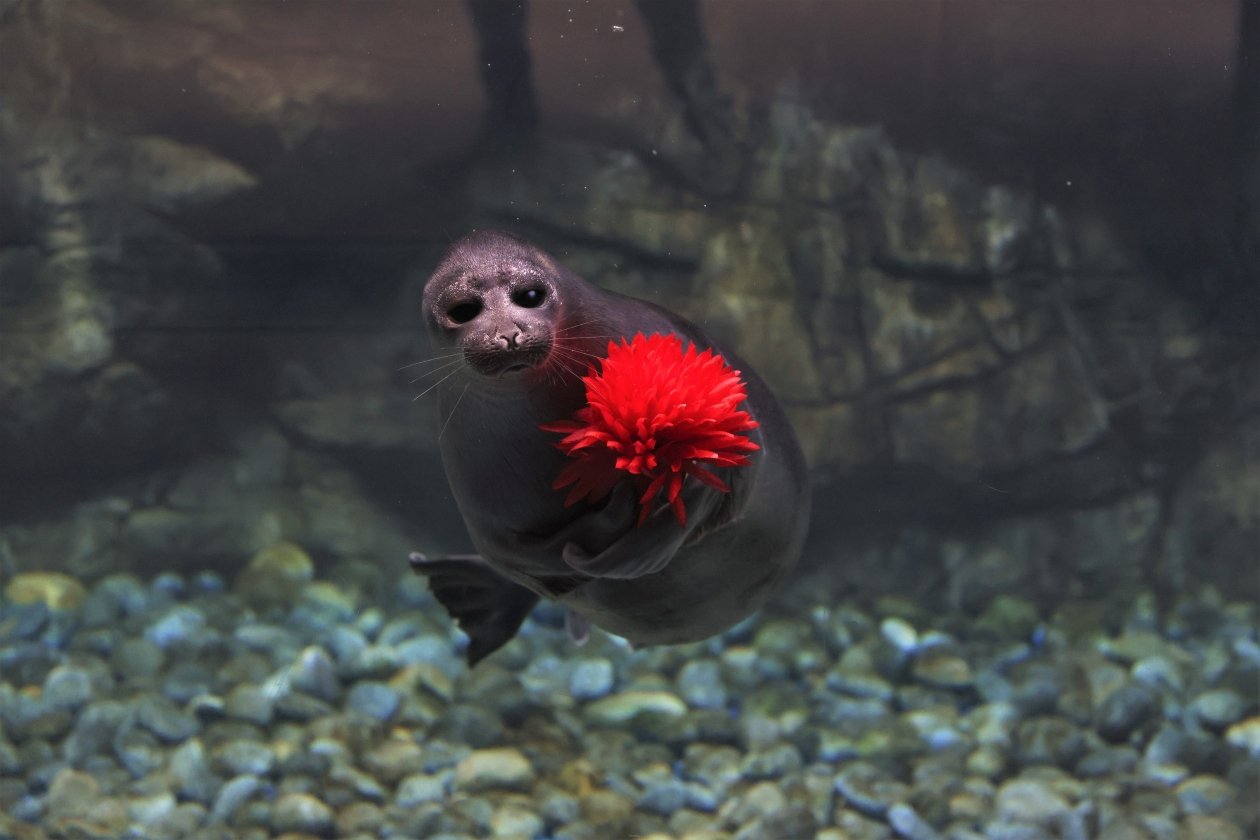 "Так сложилось, что дни рождения байкальских нерп в Приморском океанариуме отмечают 19 марта — в день, когда они появились в научно-образовательном комплексе. На тот момент Альфу уже было 4 года, он старше и опытнее всех. Даже морщины на его мордочке придают ему вид этакого мудрого старца. Он — "мужчина в самом расцвете сил", сегодня ему исполнилось 14", — говорится в сообщении.
