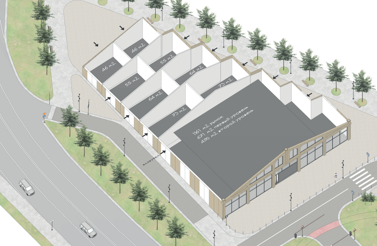 Судя по эскизам, территорию в 1,65 га, которую ранее урбанистический тренд обходил стороной, превратят в современный квартал. Как и анонсировалось ранее, вместо стихийного рынка здесь появится крытый современный. Ранее руководитель ГК "Остов" Игорь Шаповалов отмечал, что старые торговые точки должны трансформироваться в современные пространства, ведь торговля — это тоже часть городской культуры, и она заслуживает качественного архитектурного облика.