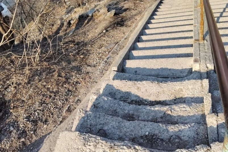 Напомним, что по факту травмирования пожилой женщины на лестнице на улице Добровольского во Владивостоке проводится проверка. Конструкция находится в ненадлежащем состоянии.