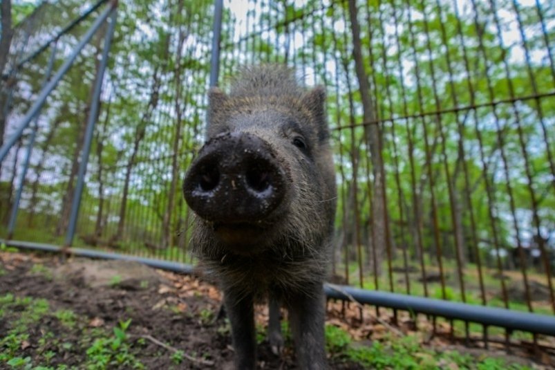 На кадрах, опубликованных в Telegram-канале (18+), видно, как кабанчик старается изо всех сил: он карабкается, скользит, но каждый раз сползает вниз.