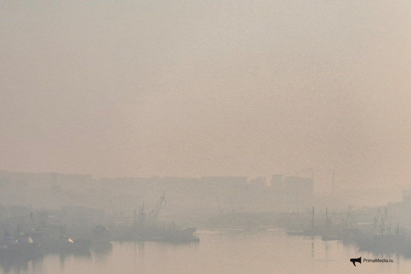 Окутанный смогом Владивосток — в объективе ИА PrimaMedia Явление связано с природными пожарами и отсутствием ветра