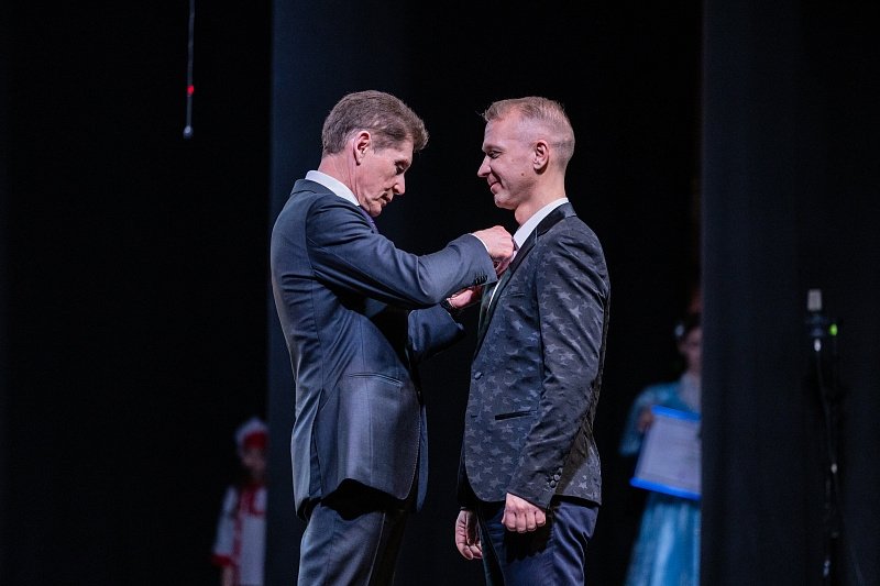 Поздравления присутствующим со сцены адресовал и глава Владивостока. Константин Шестаков отметил, что чествуют не только работников культуры, но и начинающих артистов — победителей фестиваля "Владивосток. Театральная гавань". Ребята показали высокий уровень своего актерского мастерства, который оценили представители ведущих театральных институтов.