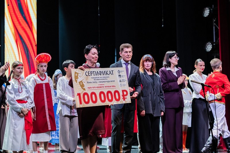 Также глава региона вручил девять сертификатов на 100 тысяч рублей руководителям школьных театров. Среди них коллективы школ № 9, 11, 21, 23, 48, 62, 83, а также центра образования "Вектор" и лицея № 41.