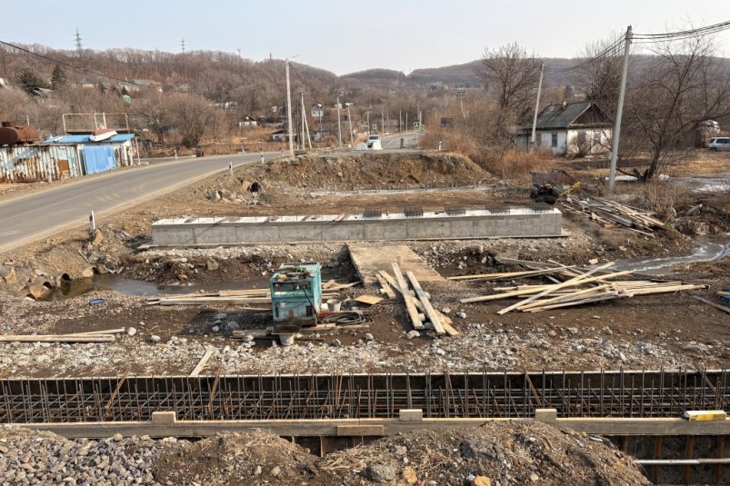 PrimaMedia, 26 марта. Специалисты приступили к бетонированию насадок под монтаж опор моста на центральной улице Шкотово в Приморье. Возведение объекта, связывающего две части населенного пункта, находится на особом контроле краевого Минтранса из-за срыва сроков предыдущим подрядчиком, сообщила пресс-служба краевого правительства.