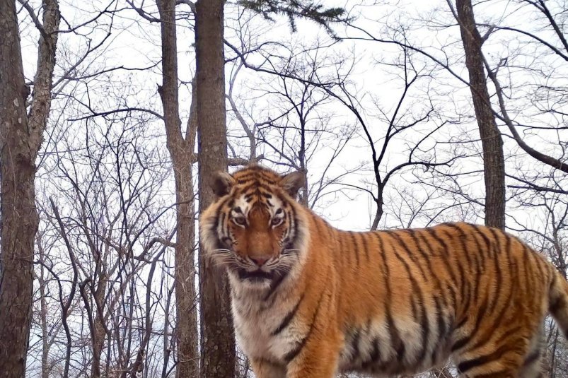 "Амурский тигр — самый северный подвид тигра, шерсть его более густая и светлая, чем у южных сородичей. Чёрные полосы на рыжей "шубке" кошки уникальны и являются своеобразным "паспортом" животного", — говорится в сообщении.