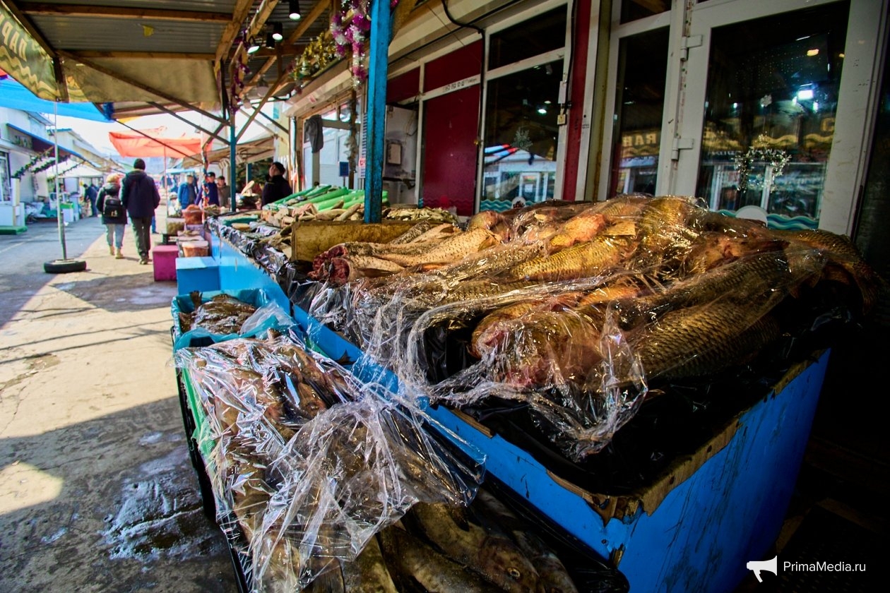 Однако продовольственный рынок работает в полном объёме. Здесь много овощей и фруктов, а цены, традиционно одни из самых низких в городе. Это притягивает людей. Даже в будние дни здесь полно народу.
