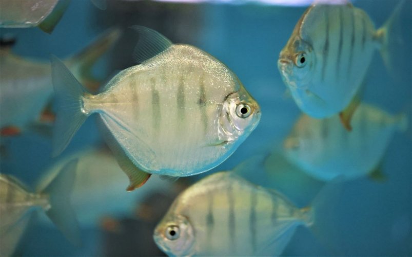 Кстати, метинисы не единственные мирные пираньи в океанариуме. Их "травоядную партию" составляют внешне похожие на них милеусы Шомбургка, а также два вида паку — бурый и красный. А вот классических хищников в экспозиции представляет пиранья Натеррера. Всех этих рыб можно увидеть в одном зале научно-образовательного комплекса. К слову, семейство пираньевых насчитывает 16 родов и около 97 видов, из которых только 40 являются плотоядными.