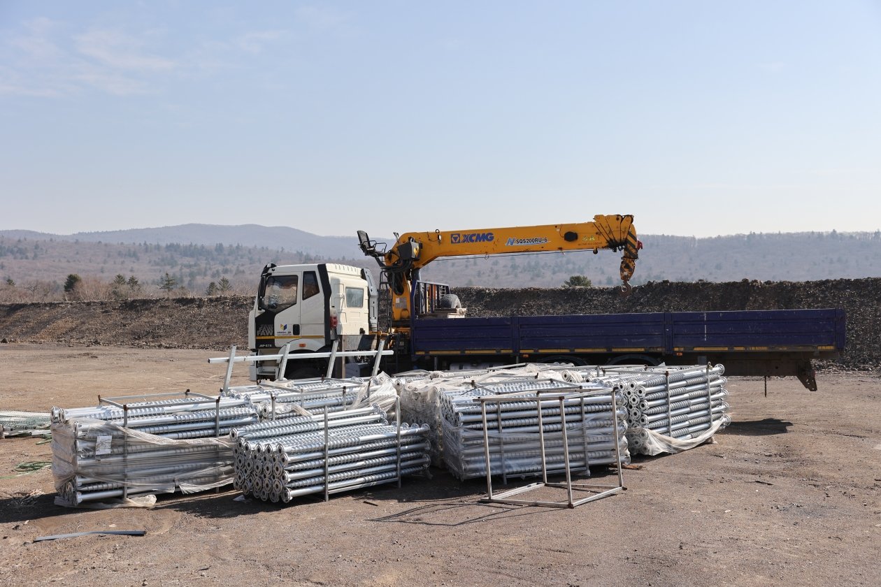 Общая территория "Востока" — 152,6 гектара. На данный момент уже смонтирована 731 свая под ограждение стрелковых зон на "500" и "2500" (открытых галерей) на протяжении 2167 метров. Всего будет произведен монтаж 2147 свай, созданы монолитные конструкции двухэтажного здания и смонтированы опоры ЛЭП.
