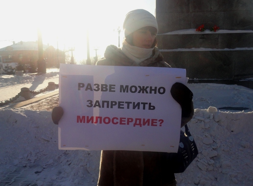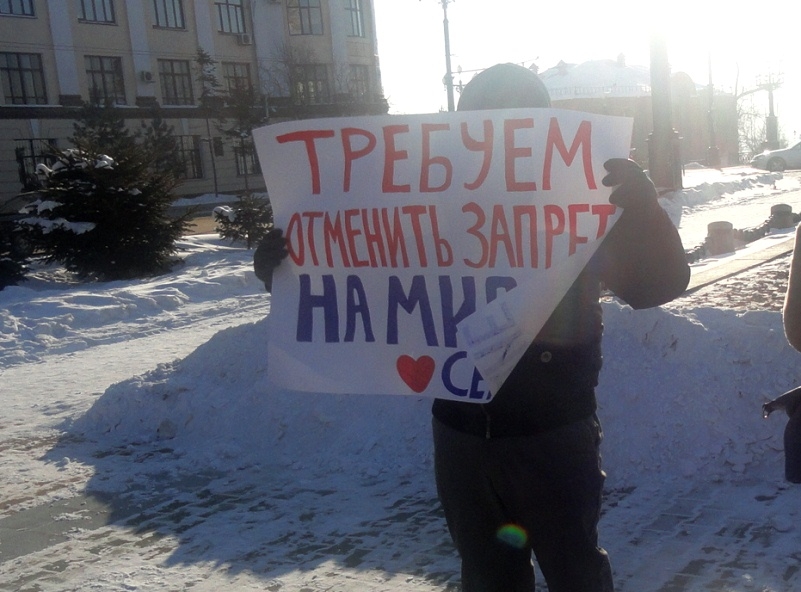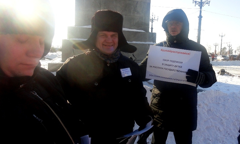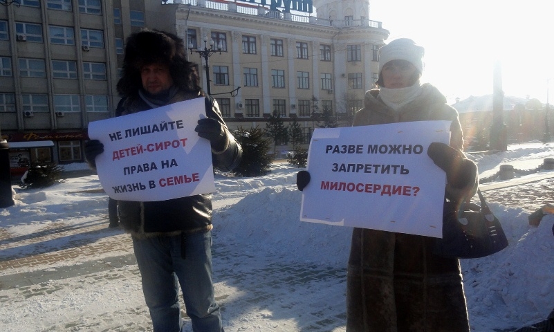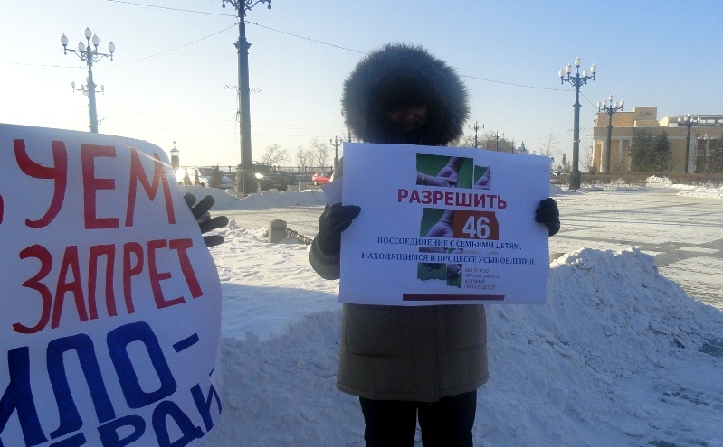 Пикет против закона "Димы Яковлева" прошел сегодня в Хабаровске. Около 20 пикетчиков собралось на Комсомольской площади в столь морозный день, сообщает корр. ИА AmurMedia.