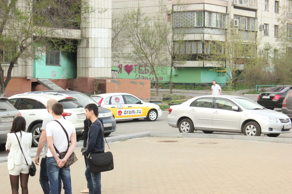 После того, как актрисе все же удалось припарковать автомобиль и выйти в публику, началась самая обычная фото-сессия, с самой настоящей давкой. Охранники со всех сторон оцепили подход к нарушительнице спокойствия в нашем городе, а пускали фотографироваться с Грей только одного-двух людей за один раз.