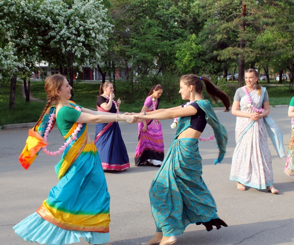 Вышедшие в центр Хабаровска кришнаиты своими громкими песнями и веселыми танцами подняли прохожим настроение и заставили их улыбаться. Таким образом, представители Международного общества сознания Кришны открыли ежегодный летний сезон харинам, сообщает корр. ИА AmurMedia.