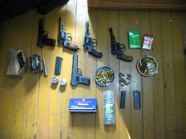 "В результате проведенных сотрудниками УФСБ по месту жительства данного гражданина оперативно-розыскных мероприятий из незаконного оборота изъято пять единиц самодельного огнестрельного оружия (ТТ-2, ПМ-1, револьвер-2), более 50-ти боеприпасов различного калибра, а также девять заготовок нарезных стволов.