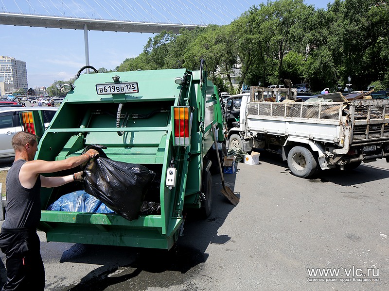 Мусор грузили в мусоровоз, Фото с места события из других источников. Фото: Автор фото: Пресс-служба администрации Владивостока