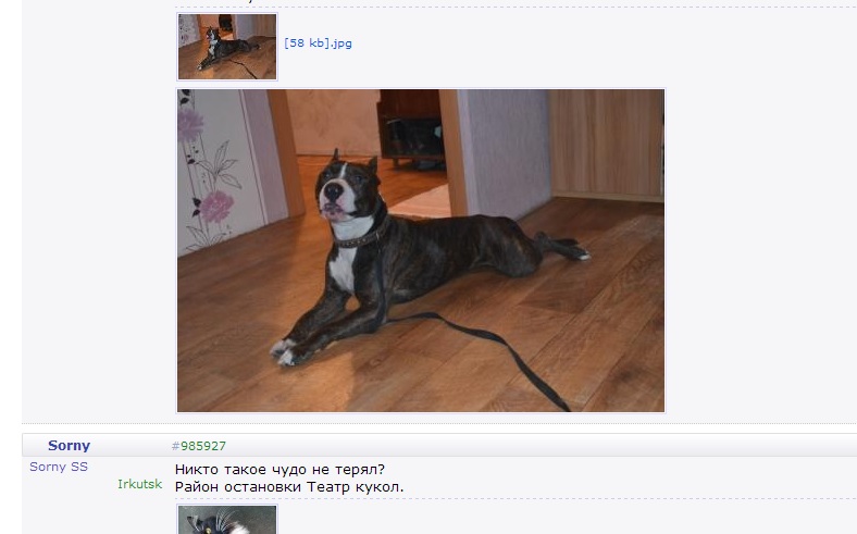 "Тигровый" стаффорд разыскивает своих хозяев в Иркутске