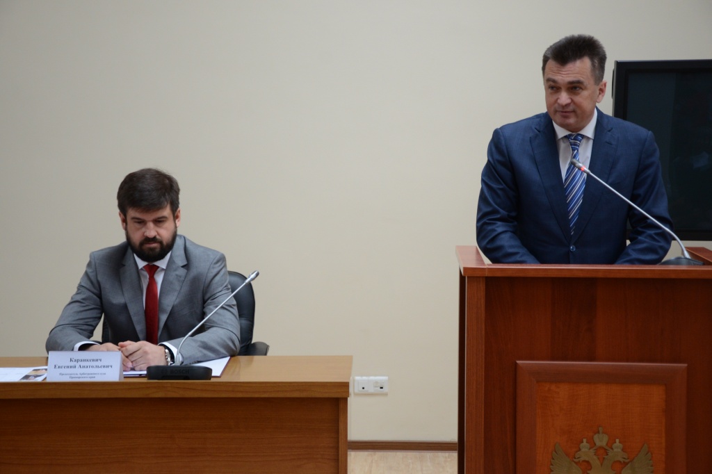Губернатор Приморья Владимир Миклушевский сегодня, 16 мая, принял участие в церемонии представления председателя краевого арбитражного суда. Глава региона поздравил с вступлением в должность Евгения Каранкевича, за плечами которого 10 лет судебной практики и более тысячи рассмотренных дел, сообщили РИА PrimaMedia в пресс-службе администрации Приморского края.