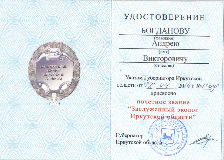 - Андрей Викторович, за какие именно работы вам было присвоено звание "Заслуженный эколог Иркутской области"?