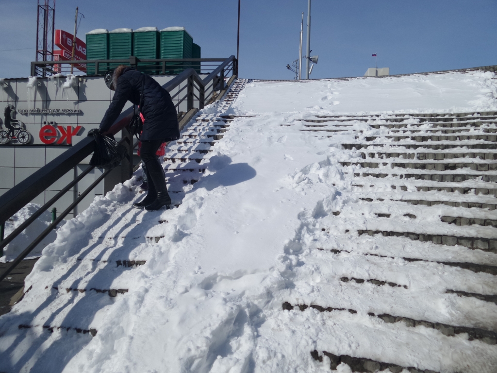 Ступени покрыты снегом и ледяной коркой, Фото с места события собственное. Фото: Автор фото: РИА PrimaMedia