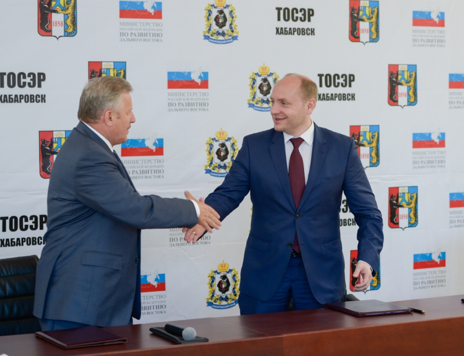 Первая в России территория опережающего социально-экономического развития "Хабаровск" начала официально действовать в Хабаровском крае. Подписи под соглашением о создании ТОСЭР поставили министр по развитию Дальнего Востока Александр Галушка, губернатор Хабаровского края Вячеслав Шпорт, мэр Хабаровска Александр Соколов, и.о. главы Хабаровского района Олег Чурсин и глава села Ракитное Нина Россохина.