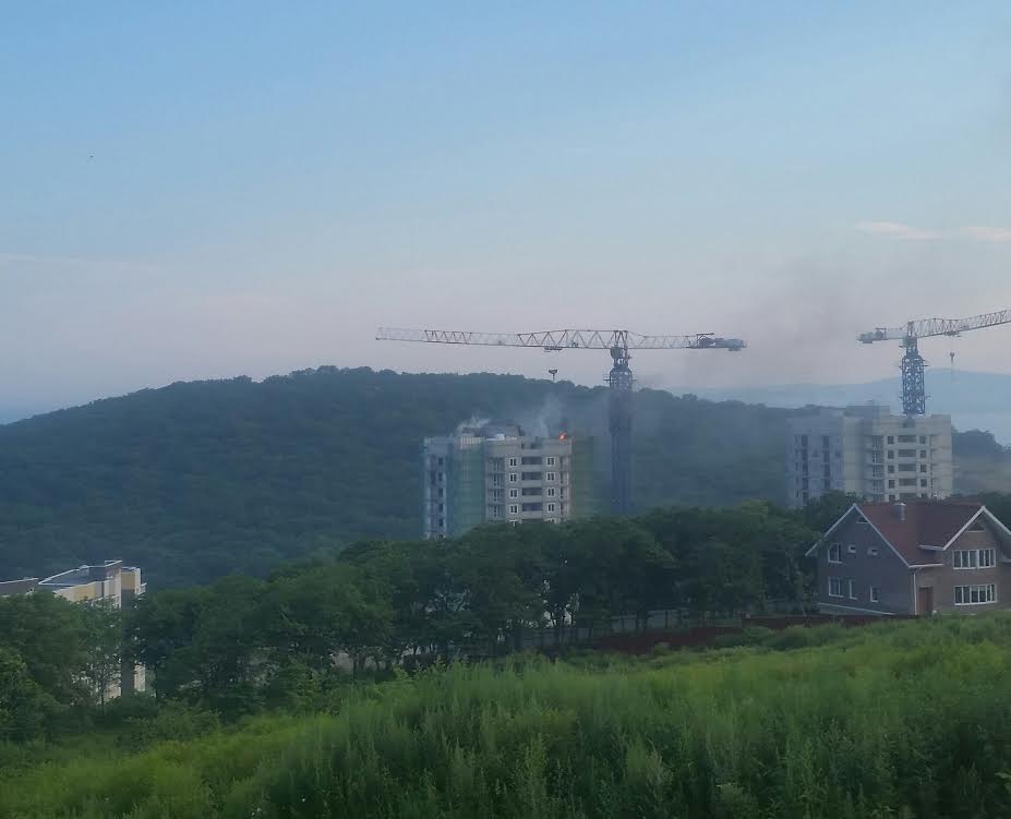 Новостройка горит в новом районе "Патрокл" во Владивостоке