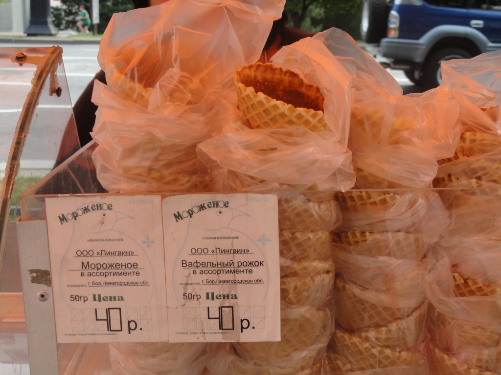 Дешевенькие бумажно-пластиковые стаканчики и сахарные рожки продают по цене дорогого мороженого в Хабаровске. И мороженое, и тара стоят одинаково: от 700 до 1100 рублей за кг, сообщает корр. ИА AmurMedia.