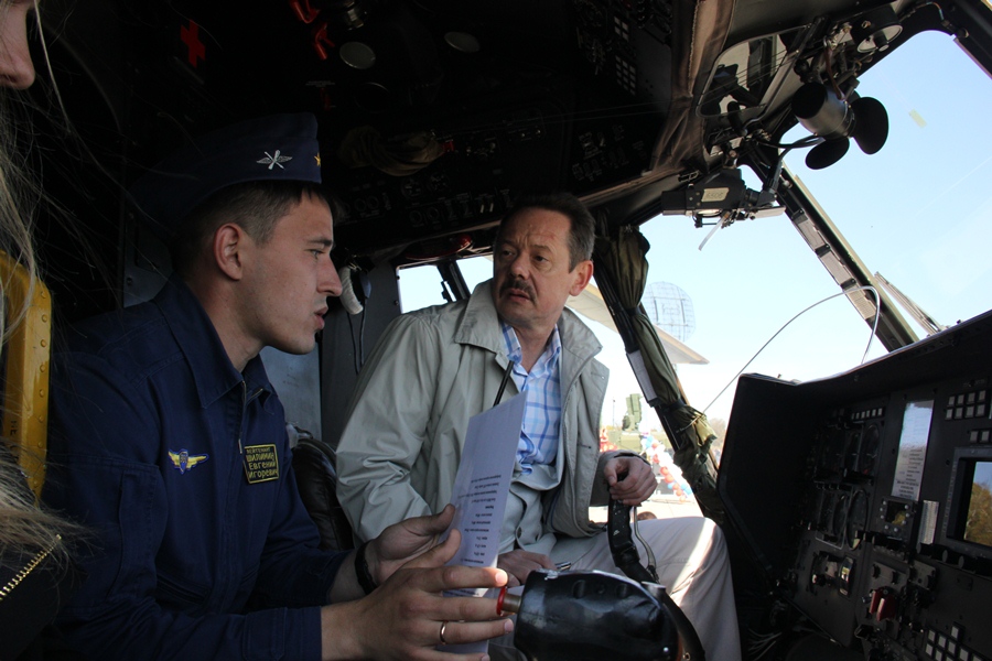 Владимир Новиков ознакомился с представленной техникой, особое внимание было уделено боевому вертолету КА-52, штурмовому военно-транспортному вертолету Ми-8АМТШ и зенитной ракетной системе С-400 "Триумф".