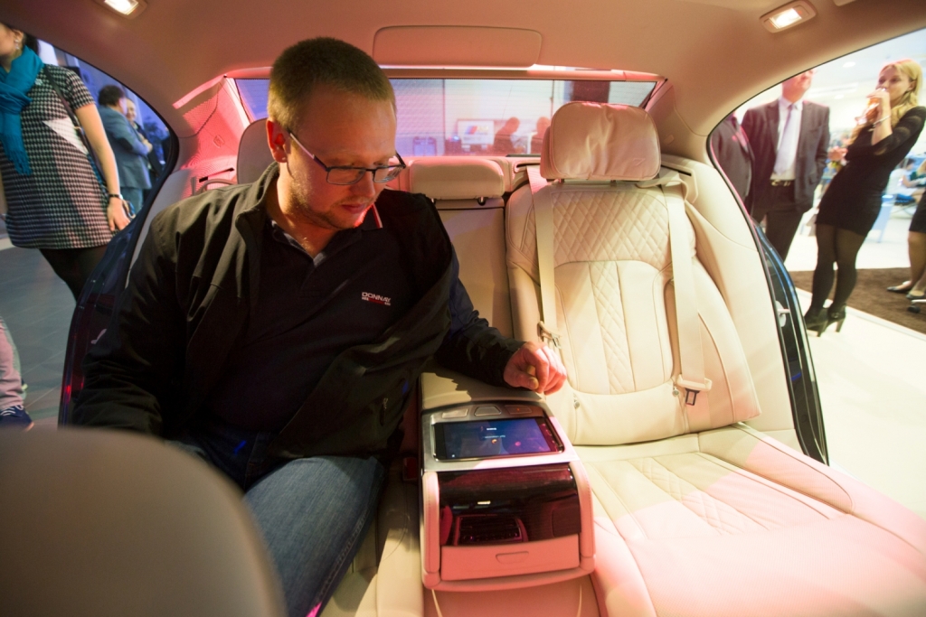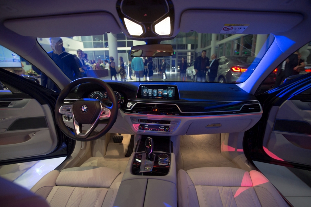 Высококачественные материалы отделки салона придают новому BMW 7 серии благородный вид и поднимают его на новый уровень эксклюзивности. Но самое большое впечатление на посетителей презентации произвел жестовый интерфейс: достаточно махнуть рукой или повращать пальцем в воздухе, чтобы, к примеру, ответить на телефонный звонок или сделать музыку в автомобиле громче. Поэкспериментировать с этой системой смог каждый гость закрытой презентации.
