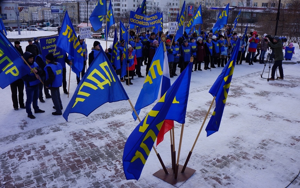 По случаю государственного праздника местом сбора либерал-демократов и сторонников политической силы стала площадь Космонавтов. Фото: Фото: Пресс-служба Магаданского регионального отделения ЛДПР