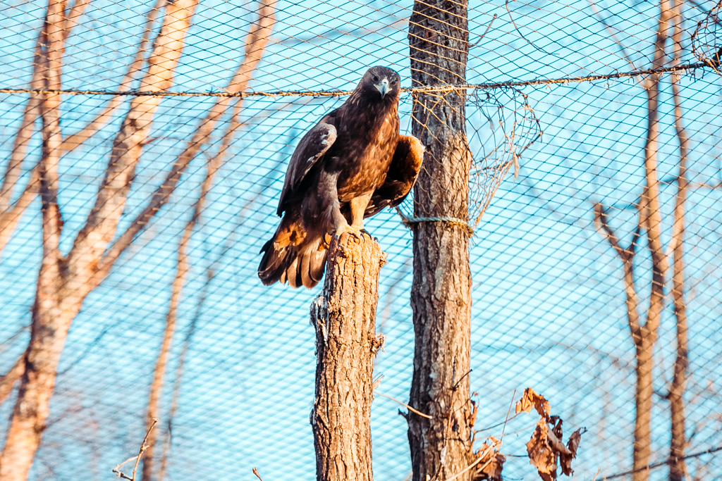 15 видов хищных птиц живут в двух больших вольерах. Орланы-белохвосты и некоторые другие птицы летают над посетителями. В парк попадают проблемные птицы, которые не могут самостоятельно жить в природе. Выздоровевшие птицы отпускаются на волю.