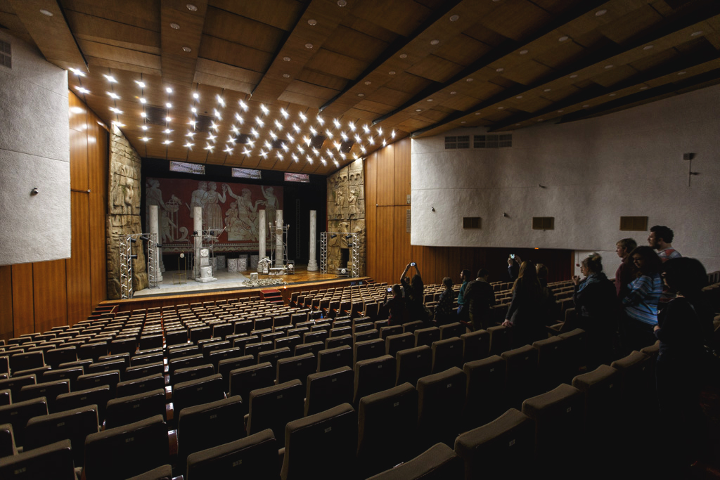 В большом и, опять же, непривычно пустом зале идет репетиция апрельской премьеры – спектакля по пьесе Григория Горина "Забыть Герострата". На сцене – заслуженный артист России Николай Тимошенко в роли Клеона и Клементина – в исполнении Александры Аубекеровой. 868 уютных кресел ждут вечерних театралов, занято лишь одно место, во главе репетиции – народным артистом России Ефимом Звеняцким.